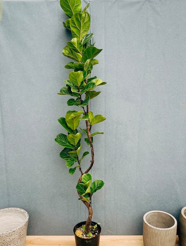 ◽︎植物名:フィカスリラータバンビーノ/カシワバゴムノキ ◽︎プラスチック鉢 7号 ※受け皿無し ◽︎サイズ 86(高さ:鉢底から約177cm、幅:約35cm) ◽︎撮影日:2026.3.13 【特徴/育て方】 置き場所: 直射日光の当たらない、日当たりと風通しが良い場所がベストです。エアコンの風が直接当たらない場所に置いてください。 水のあげ方: 春〜秋は、土の表面が乾いたらたっぷりと水をあげてください。その際、根腐れの原因となりますので、受け皿に溜まった水は必ず捨ててください。 冬は、暖かい時間帯を選び、土の表面が乾いて2〜3日してからたっぷりと水をあげてください。その際、受け皿に溜まった水は必ず捨ててください。 枯れる原因: 水のあげすぎ、あげなさすぎは、植物が枯れる原因となります。特に水のあげすぎには注意し、乾燥気味に育てて頂くと良いです。寒さに弱いため、冬場は必ず屋内に取り込み、暖かい場所で管理してください。 【おすすめポイント】 とても長ーく、スタイリッシュなフィカスリラータバンビーノ(小葉タイプ)が入荷致しました! フィカスリラータバンビーノは、柏の葉に似ているダークグリーンの葉がおしゃれで人気の品種です。 こちらはとても背の高く、シンボルツリーとしてもおすすめの一鉢です! 『永久の幸せ』という花言葉から、大切な方へのプレゼントとしてもおすすめですよ。 是非、いかがでしょうか? ○最後に ・こちらは現品でのお届けになります。 ・インボイス対応の領収書発行可能です。ご希望の方はご連絡ください。 ・上部をかなり折り畳んで発送致します。懸念される方は追加料金がかかりますが、折り畳まずに配送可能です。ご希望の場合はご購入前にご連絡をお願い致します。 ・何かございましたらお気軽にお問い合わせください。