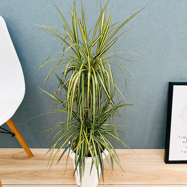 ◽︎植物名:ドラセナ コンシンネ マジナータゴールド ◽︎プラスチック鉢 7号 ※受け皿無し ◽︎サイズ 1(高さ:鉢底から約85cm、幅:約45cm) ◽︎撮影日:2026.1.17 ※【法人、事業所、店舗宛の方限定】お値引き対象商品です!対象の方は、ご購入前にご連絡下さい。 【特徴/育て方】 置き場所: 直射日光の当たらない、日当たりと風通しが良い場所がベストです。エアコンの風が直接当たらない場所に置いてください。 水のあげ方: 春〜秋は、土の表面が乾いたらたっぷりと水をあげてください。その際、根腐れの原因となりますので、受け皿に溜まった水は必ず捨ててください。 冬は、暖かい時間帯を選び、土の表面が乾いて2〜3日してからたっぷりと水をあげてください。その際、受け皿に溜まった水は必ず捨ててください。 枯れる原因: 水のあげすぎ、あげなさすぎは、植物が枯れる原因となります。特に水のあげすぎには注意し、乾燥気味に育てて頂くと良いです。 寒さに弱いので、冬場は必ず屋内に取り込み、暖かい場所で管理してください。 【おすすめポイント】 ドラセナコンシンネの珍しい品種、ドラセナコンシンネマジナータゴールドです☆ はっきりとしたコントラストのある明るい斑入りの葉に、スタイリッシュな樹形をした、クールな雰囲気がとてもかっこいい品種です。 あまり入荷しない品種のため、この機会に是非、いかがでしょうか? ○最後に ・こちらは現品でのお届けになります。 ・インボイス対応の領収書発行者可能です。ご希望の方はご連絡ください。 ・何かございましたらお気軽にお問い合わせください。