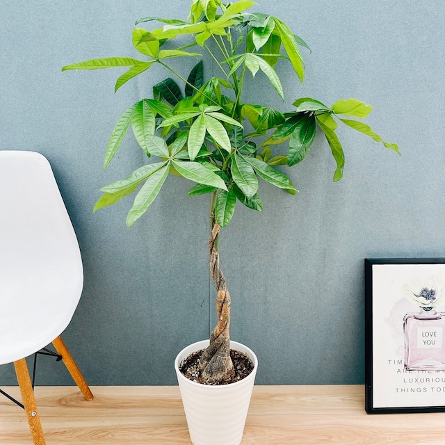 [現品]64番 パキラ 編み込み 8号 観葉植物 おしゃれ 室内 大型 ねじり プラコッタ鉢受け皿付き 育てやすい