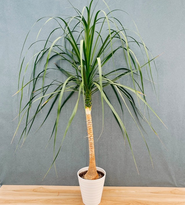 ◽︎植物名:ポニーテール/トックリラン/ノリナ ◽︎プラコッタ鉢受け皿付き 8号 ◽︎サイズ 22(高さ:鉢底から約156cm、幅:約100cm) ◽︎撮影日:2026.2.25 ※【法人、事業所、店舗宛の方限定】お値引き対象商品です!対象の方は、ご購入前にご連絡下さい。 【特徴/育て方】 置き場所: 日当たりが良く、風通しが良い窓際がベストです。日光が大好きな植物ですので、直射日光に気をつけてなるべく日光のあたる場所に置いてください。 植物の全体に満遍なく日が当たるように育てると元気な株に育ちます。エアコンの風が直接当たらない場所に置いてください。 ※直射日光の当て過ぎは葉焼けを起こす可能性がありますので、注意してください。 水のあげ方: 春〜秋は、土の表面が乾いたらたっぷりと水をあげてください。その際、根腐れの原因となりますので、受け皿に溜まった水は必ず捨ててください。 冬は、暖かい時間帯を選び、土の表面が乾いて2〜3日してからたっぷりと水をあげてください。その際、受け皿に溜まった水は必ず捨ててください。 枯れる原因: 水のあげすぎ、あげなさすぎは、植物が枯れる原因となります。特に水のあげすぎには注意し、乾燥気味に育てて頂くと良いです。 寒さにも弱いので、暖かい場所で管理してください。 【おすすめポイント】 ぷっくりとした株元に、ふさふさとした葉をもつ、トックリランです☆トックリランの花言葉は「多くの才能」。数十年に一度たくさんの花を咲かせることから、そうつけられたそうです。別名ポニーテールと呼ばれ、しっかりとした太い幹元がかっこよく、美しくしなやかな葉が存在感たっぷりでおすすめですよ! こちらは大型サイズですので、シンボルツリーとしてもおすすめです! 是非、いかがでしょうか? ○最後に ・こちらは現品でのお届けになります。 ・インボイス対応の領収書発行可能です。ご希望の方はご連絡ください。 ・何かございましたらお気軽にお問い合わせ下さい。