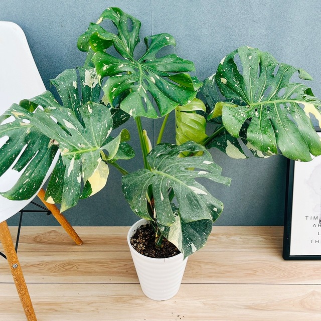 [現品]A モンステラ デリシオーサ 8号 観葉植物 室内 大型 育てやすい マーブル ホワイト×イエロー おしゃれ