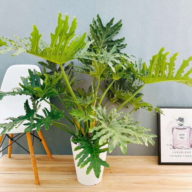 ◽︎植物名:フィロデンドロンセロームホープ ◽︎プラコッタ鉢受け皿付き 10号 ◽︎サイズ 24(高さ:鉢底から約110cm、幅:約130cm) ◽︎撮影日:2025.11.18 【特徴/育て方】 置き場所: 直射日光の当たらない、日当たりと風通しが良い場所がベストです。エアコンの風が直接当たらない場所に置いてください。 水のあげ方: 春〜秋は、土の表面が乾いたらたっぷりと水をあげてください。その際、根腐れの原因となりますので、受け皿に溜まった水は必ず捨ててください。 冬は、暖かい時間帯を選び、土の表面が乾いて2〜3日してからたっぷりと水をあげてください。その際、受け皿に溜まった水は必ず捨ててください。 枯れる原因: 水のあげすぎ、あげなさすぎは、植物が枯れる原因となります。特に水のあげすぎには注意し、乾燥気味に育てて頂くと良いです。 寒さにも弱いので、冬場は必ず屋内に取り込み、暖かい場所で管理してください。 【おすすめポイント】 通常のフィロデンドロンセロームよりも少しコンパクトにまとまるよう改良された品種、フィロデンドロンセロームホープです☆ セローム同様、エキゾチックで大きな葉がとてもかっこよく凛々しい品種で、別名『愛の木』とも呼ばれているため、大切な方へのプレゼントとしてもおすすめですよ♪ こちらは、大型10号サイズになります! 是非、いかがでしょうか? ○最後に ・こちらは現品でのお届けになります ・インボイス対応の領収書発行可能です。ご希望の方はご連絡ください。 ・何かありましたらお気軽にお問い合わせ下さい