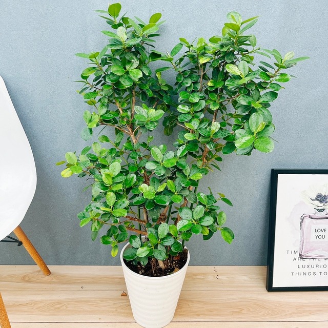 ◽︎植物名:パンダガジュマル ◽︎プラコッタ鉢受け皿付き 8号 ◽︎サイズ 86(高さ:鉢底から約90cm、幅:60cm) ◽︎撮影日:2025.12.23 【特徴/育て方】 置き場所: 直射日光の当たらない、日当たりと風通しが良い場所がベストです。エアコンの風が直接当たらない場所に置いてください。 水のあげ方: 春〜秋は、土の表面が完全に乾いたらたっぷりと水をあげてください。 冬は、暖かい時間帯を選び、土の表面が乾いて2〜3日してからたっぷりと水をあげてください。 水やり後の受け皿に溜まった水は必ず捨ててください。 ※水切れには注意してください 枯れる原因: 水のあげすぎ、あげなさすぎは、植物が枯れる原因となります。特に水のあげすぎには注意し、乾燥気味に育てて頂くと良いです。 寒さに弱いので、冬場は必ず屋内に取り込み、暖かい場所で管理してください。 【おすすめポイント】 当店人気商品、光沢のある丸くて可愛らしい葉が魅力的な品種、パンダガジュマルです☆ 『多幸の木』として人気のあるガジュマルの中でもあまり出回らない品種で、珍しい品種になります。 花言葉は『健康』と生命力を感じさせる花言葉を持っています。丸い葉がとても可愛らしく、葉がもりもりでおすすめですよ♪ 是非、いかがでしょうか? ○最後に ・こちらは現品でのお届けになります。 ・インボイス対応の領収書発行可能です。ご希望の方はご連絡ください。 ・何かありましたらお気軽にお問い合わせ下さい。