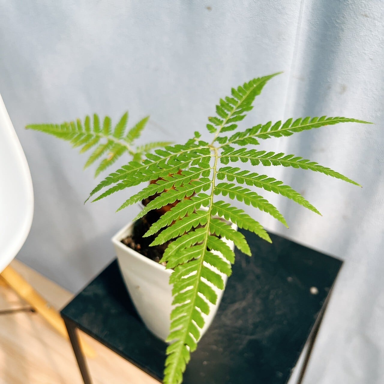 シダ植物で、高温多湿を好みますので、定期的に葉水をすると元気に育ちますが、水のあげすぎには注意してください。