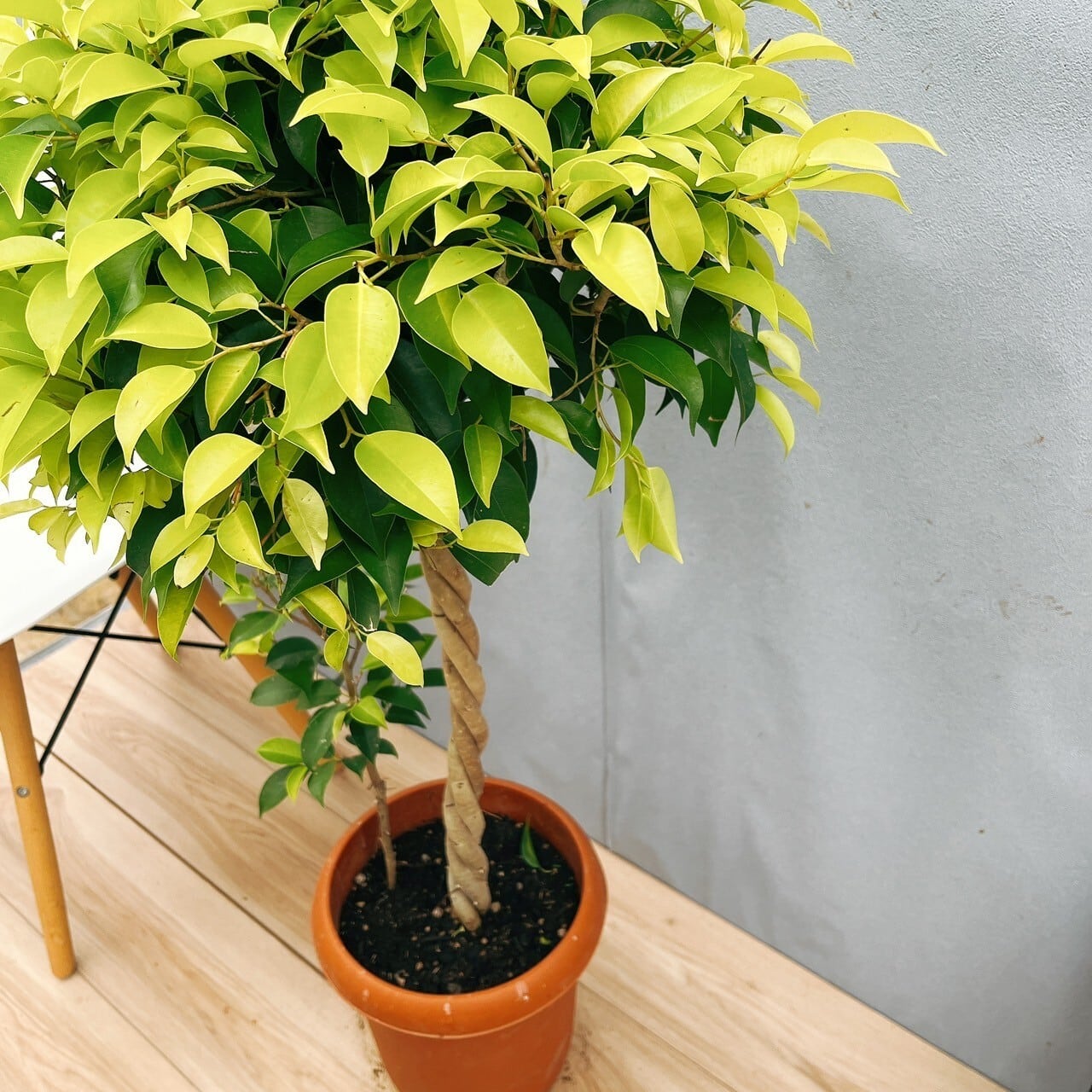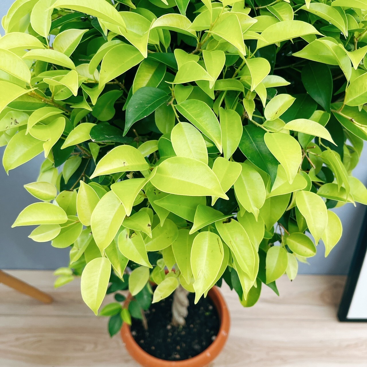 新芽が明るいライム色をした、おしゃれなベンジャミン、ベンジャミンゴールドエースです☆