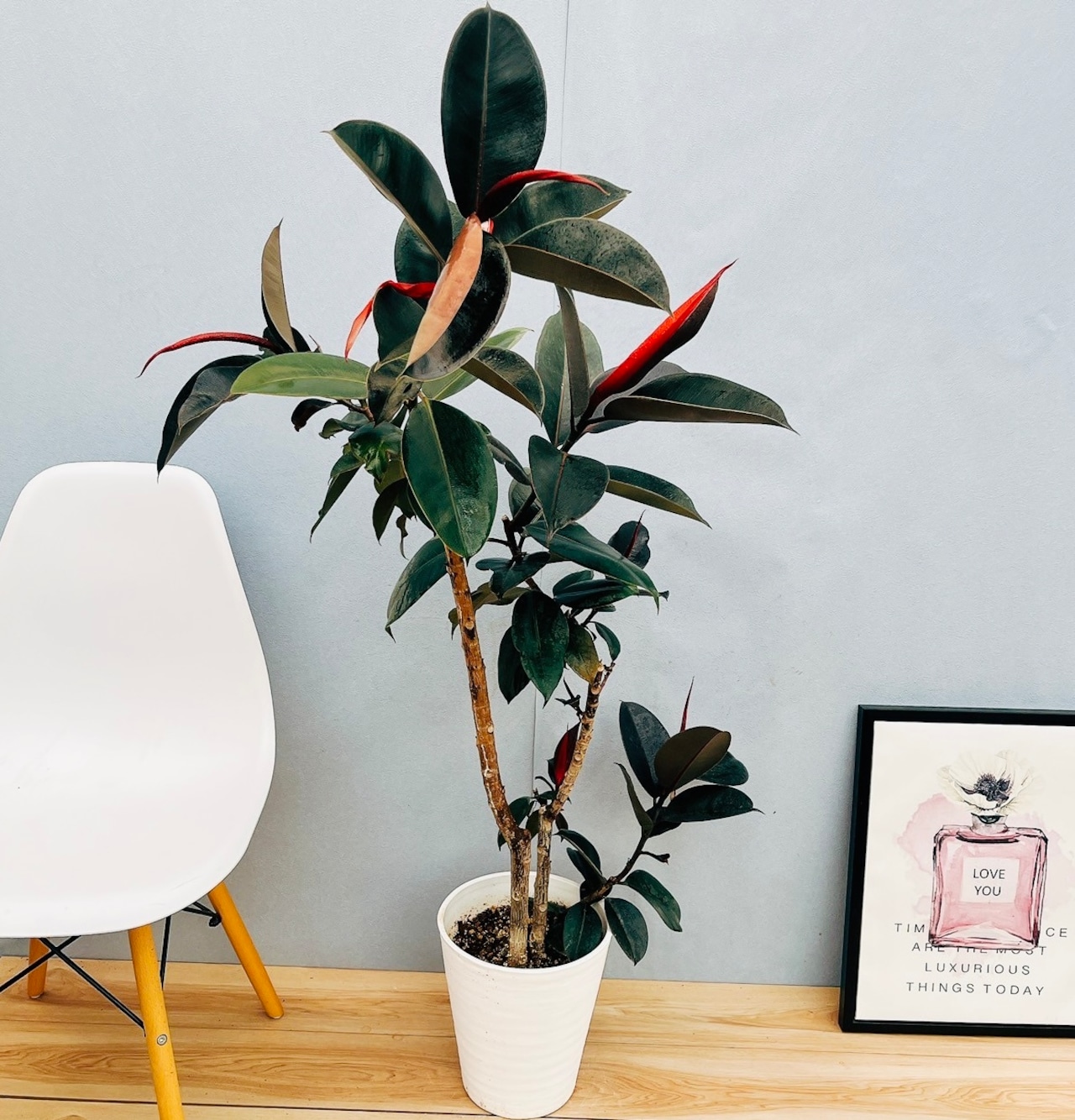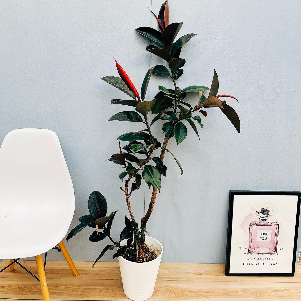 [現品]美株! 89番 フィカス バーガンディ 8号 観葉植物 大型 室内 人気 鉢受け皿付き 黒ゴム ゴムの木