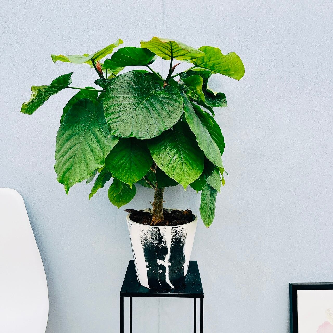 [現品]フィカス ウンベラータ 観葉植物 室内 ゴムの木 おしゃれ かわいい マーブルポット ホワイト×ブラック