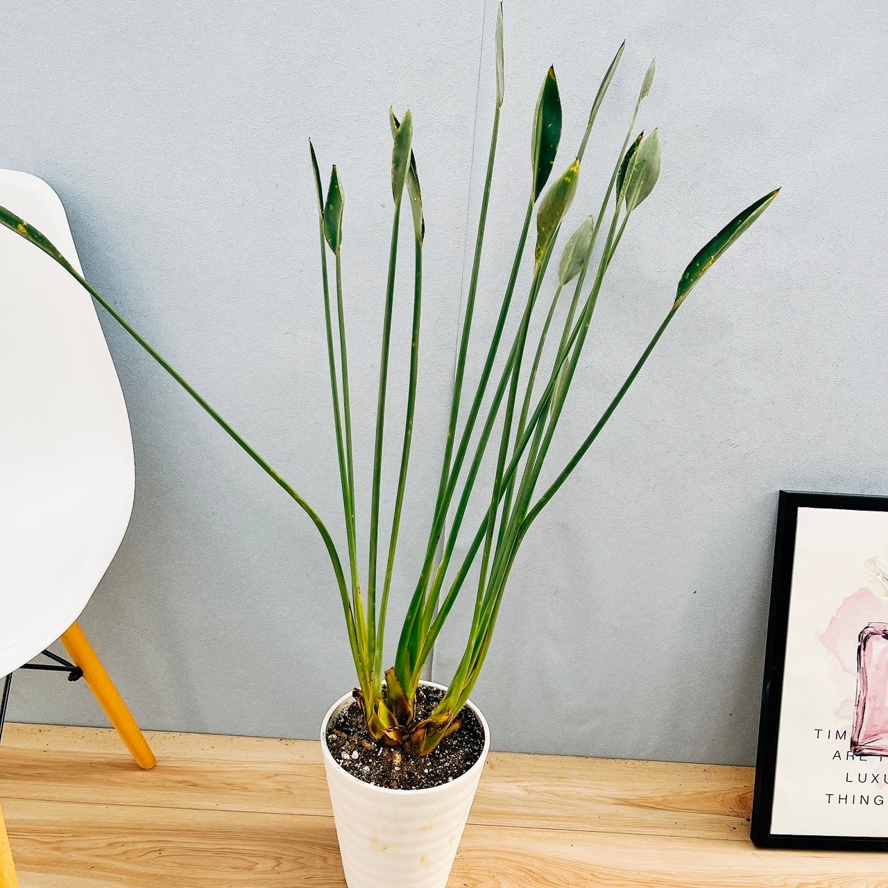 まっすぐに伸びていくその葉姿から付けられた花言葉は、『輝かしい未来』。順調に成長すると、オレンジのお花を咲かせますよ♪