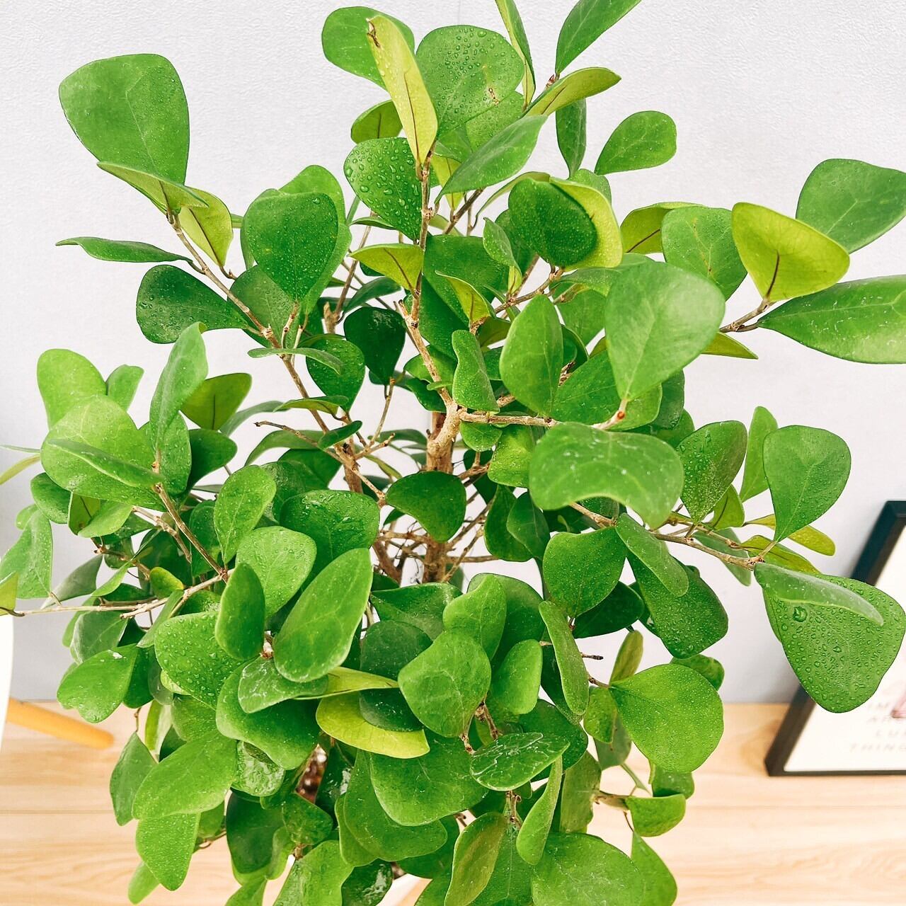 フィカスの珍しい品種で、肉厚で丸みを帯びた三角形の葉をしています。今回は曲がりのおしゃれな株が入荷致しました!葉が特徴的で可愛らしいため、他とは少し変わった小洒落た植物をお探しの方におすすめですよ♪