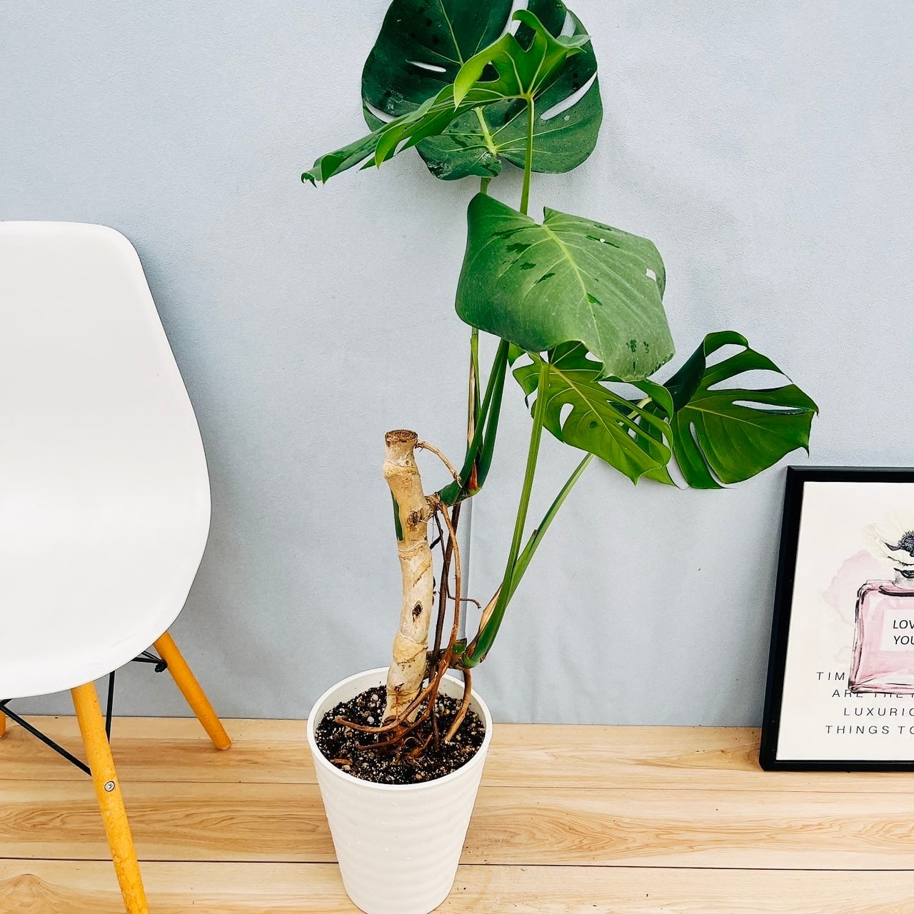 [現品]A2 八丈島産 モンステラ デリシオーサ 幹上がり 8号 観葉植物 室内 育てやすい かっこいい 鉢受け皿付き