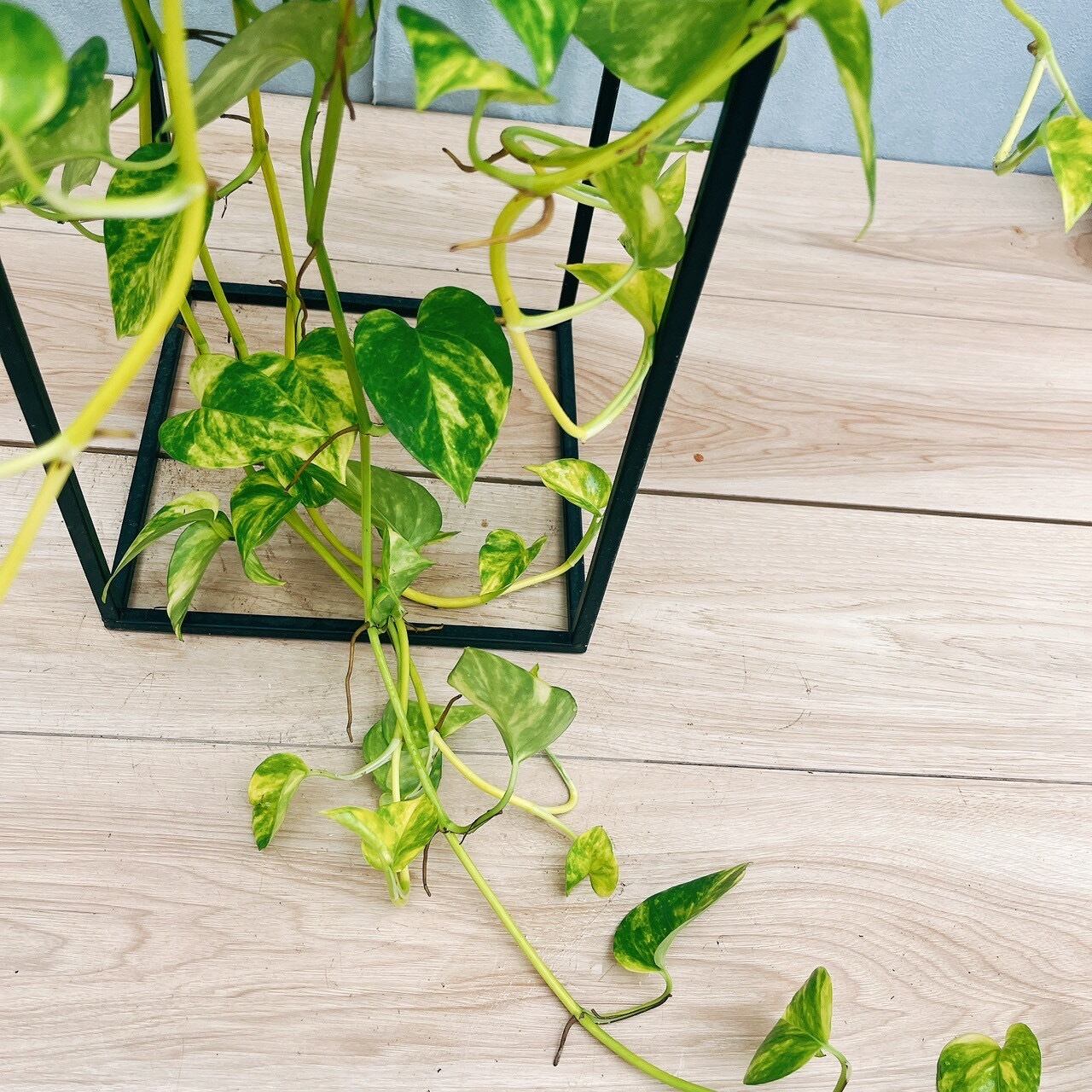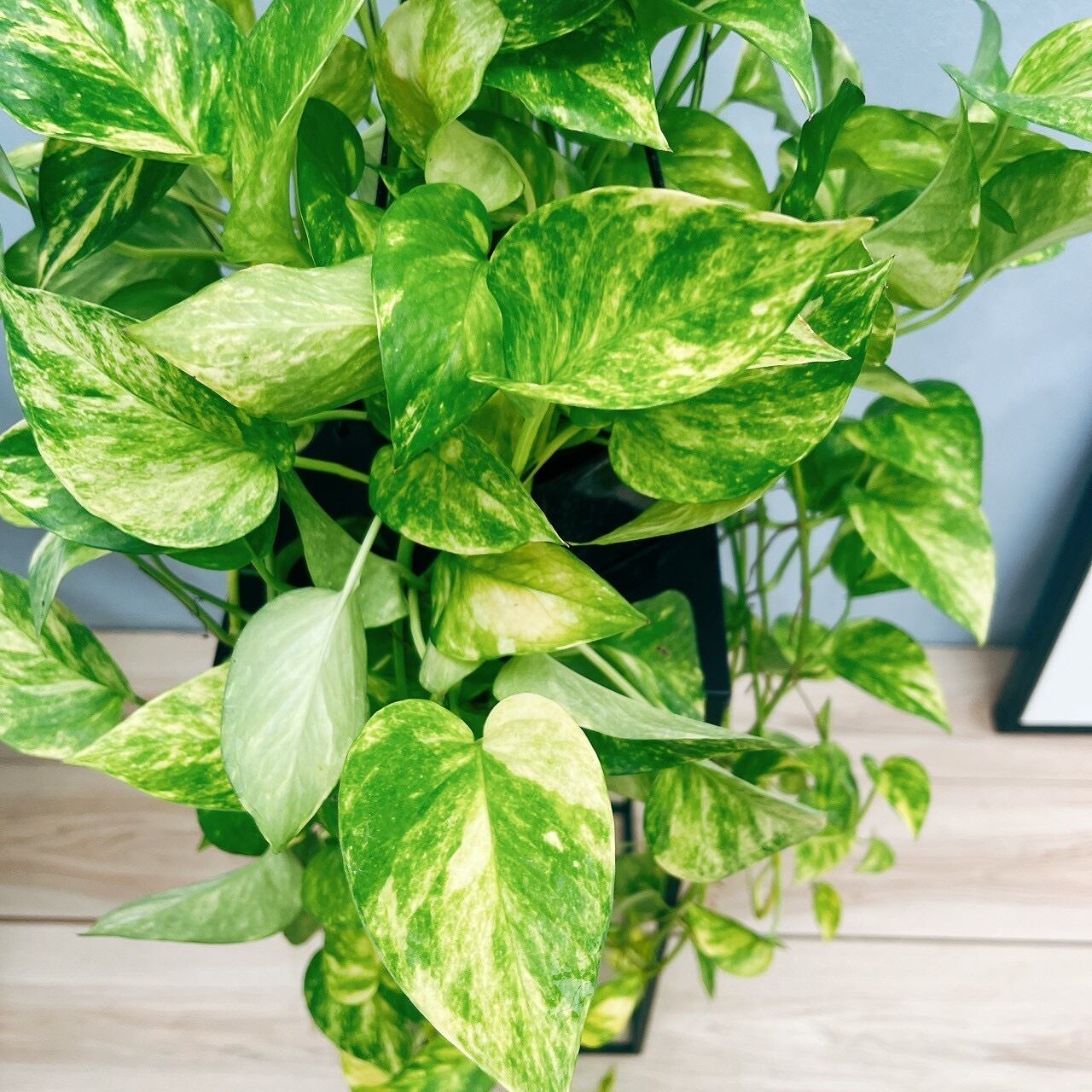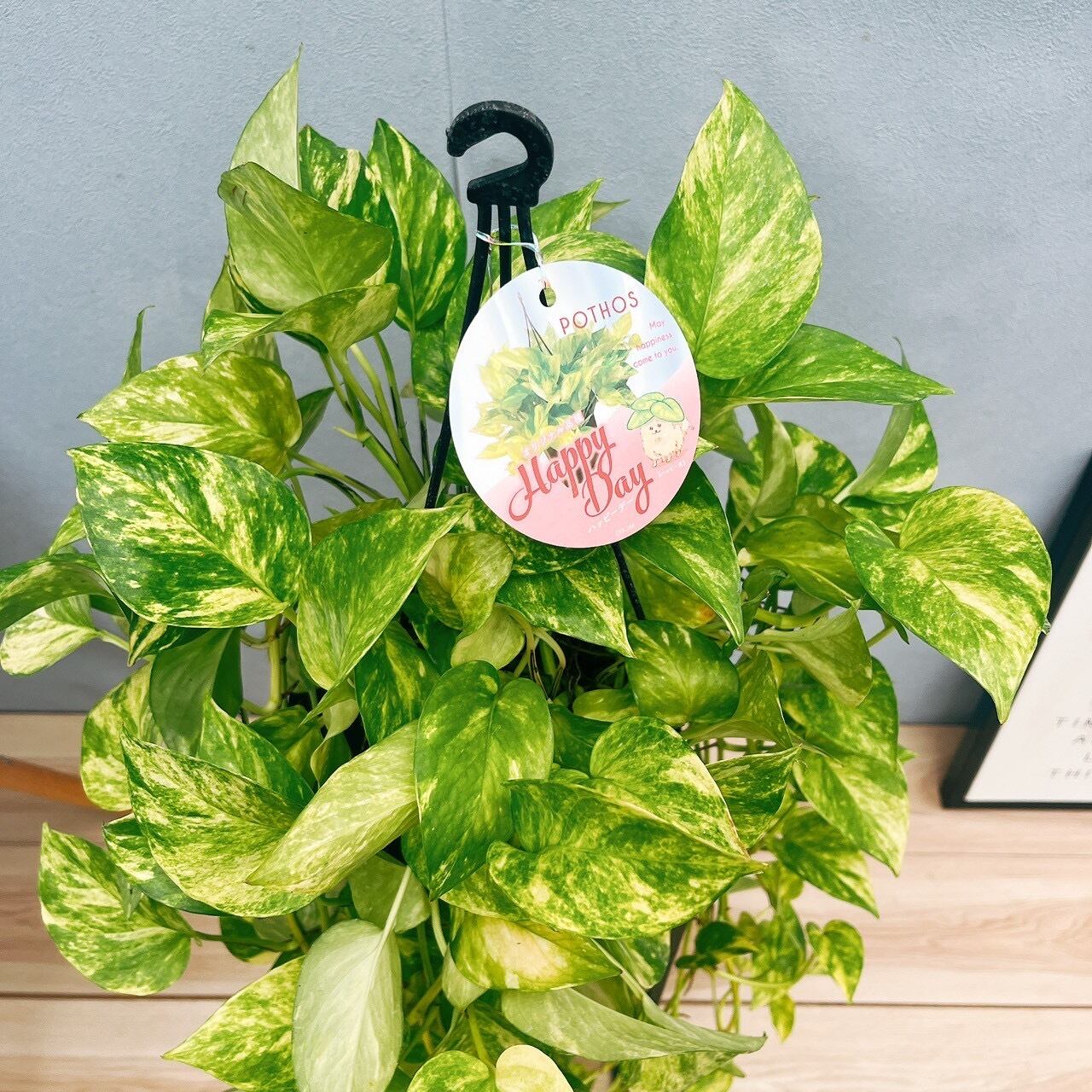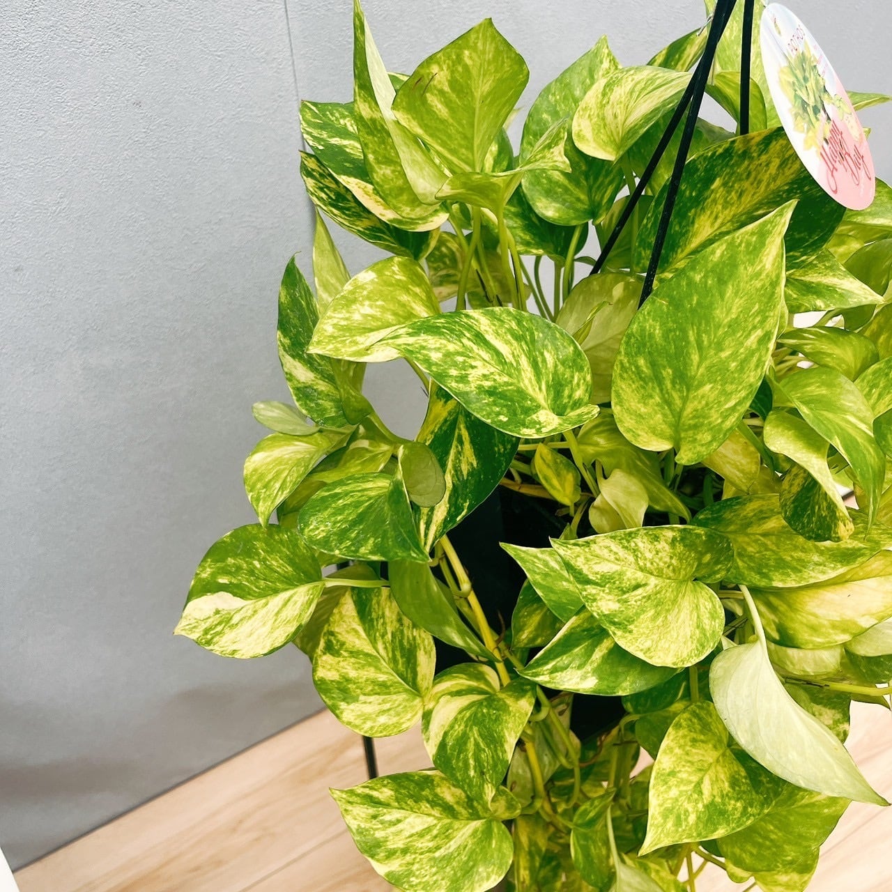 [現品]【新品種】18番 ポトス ハッピーデー 5号 観葉植物 ハンギング 吊り鉢 かわいい ラベル付き