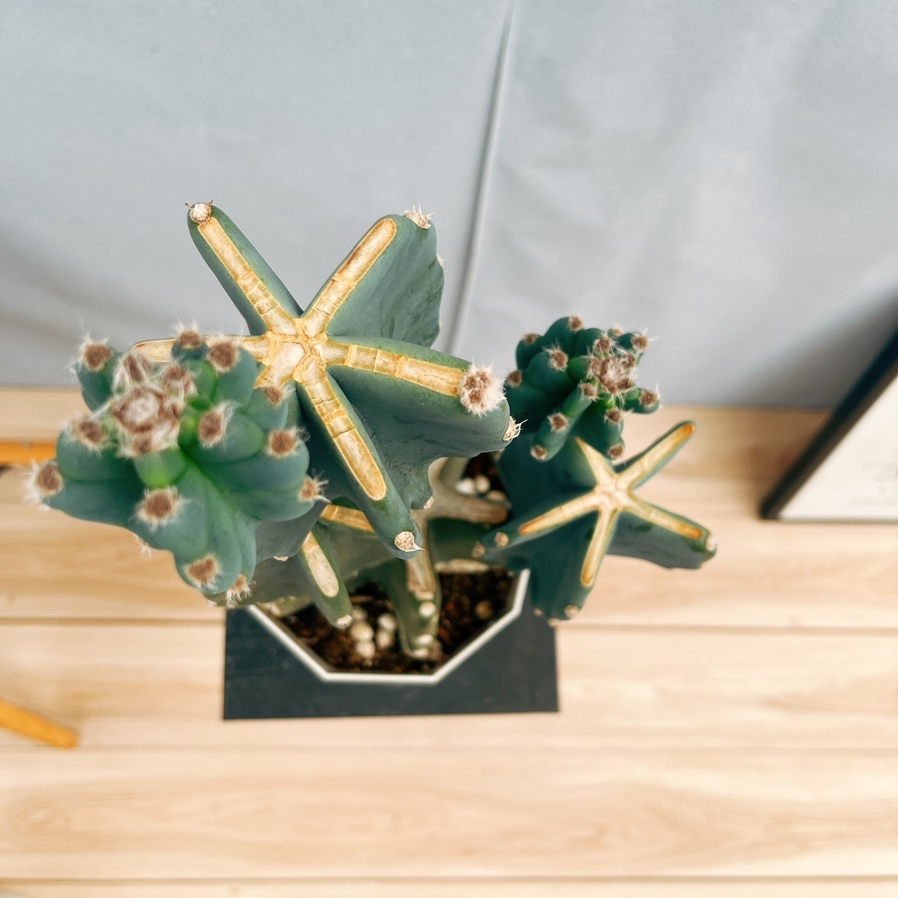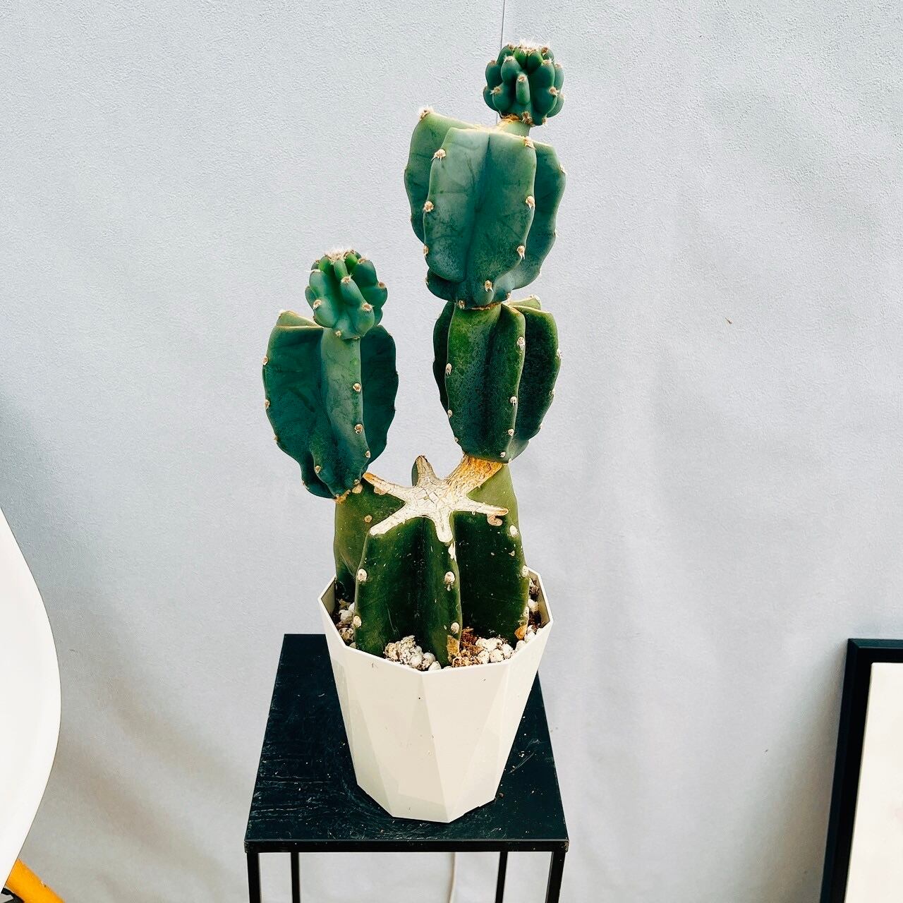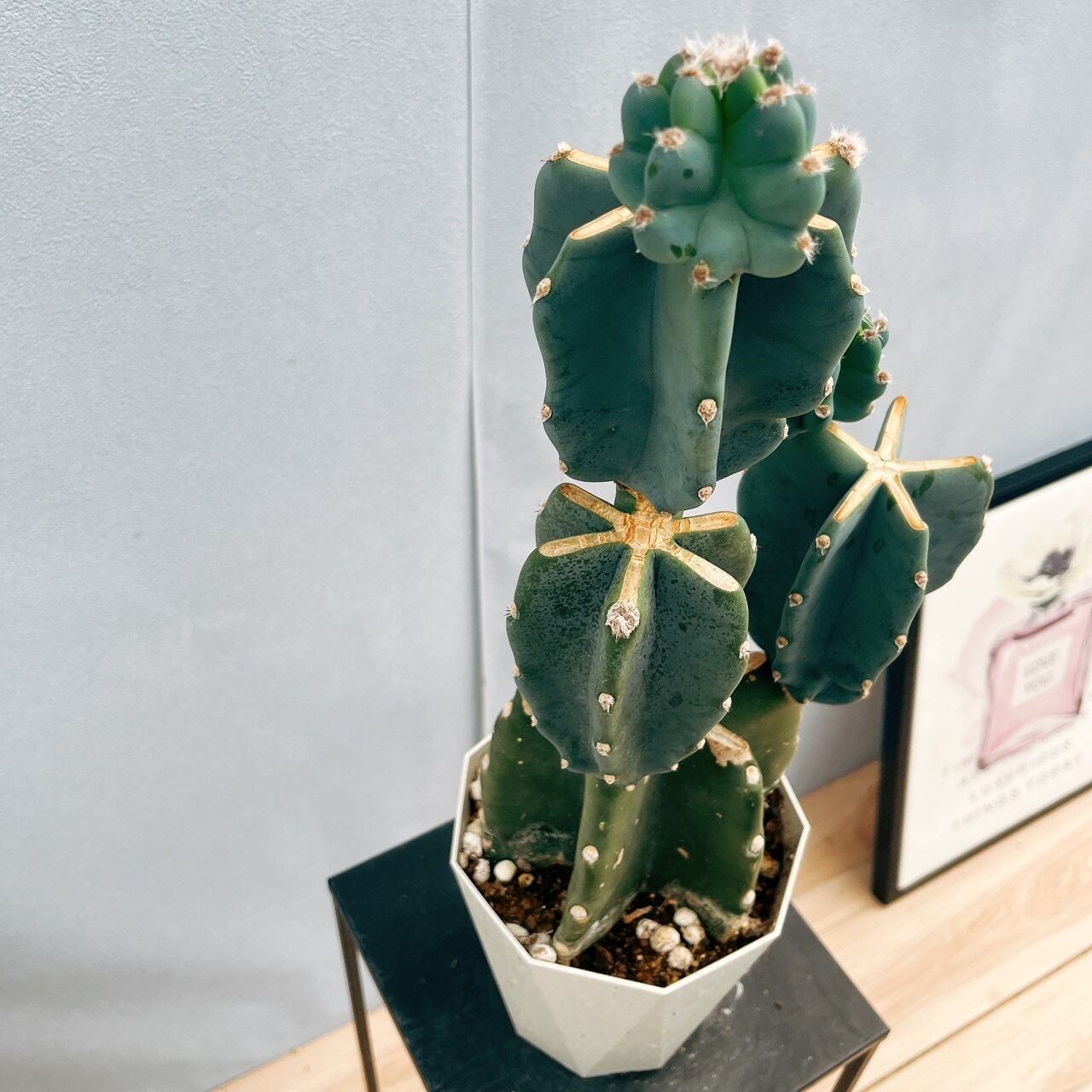 柱サボテン鬼面角は、鋭い棘がなく、丈夫で育てやすいため、サボテンを初めて育てられる方にもおすすめの品種です。こちらは、5号サイズの可愛らしいサイズで管理しやすいため、ちょっとしたプレゼントにもおすすめですよ☆