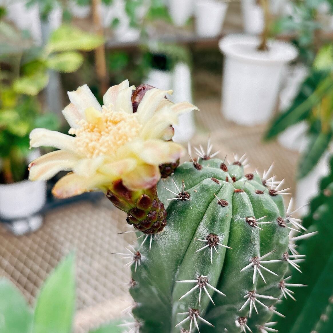 トゲトゲでかっこいい鋭い棘を持つ柱サボテン、雷神閣です☆順調に育てば、写真のような可愛らしいお花を咲かせますよ。