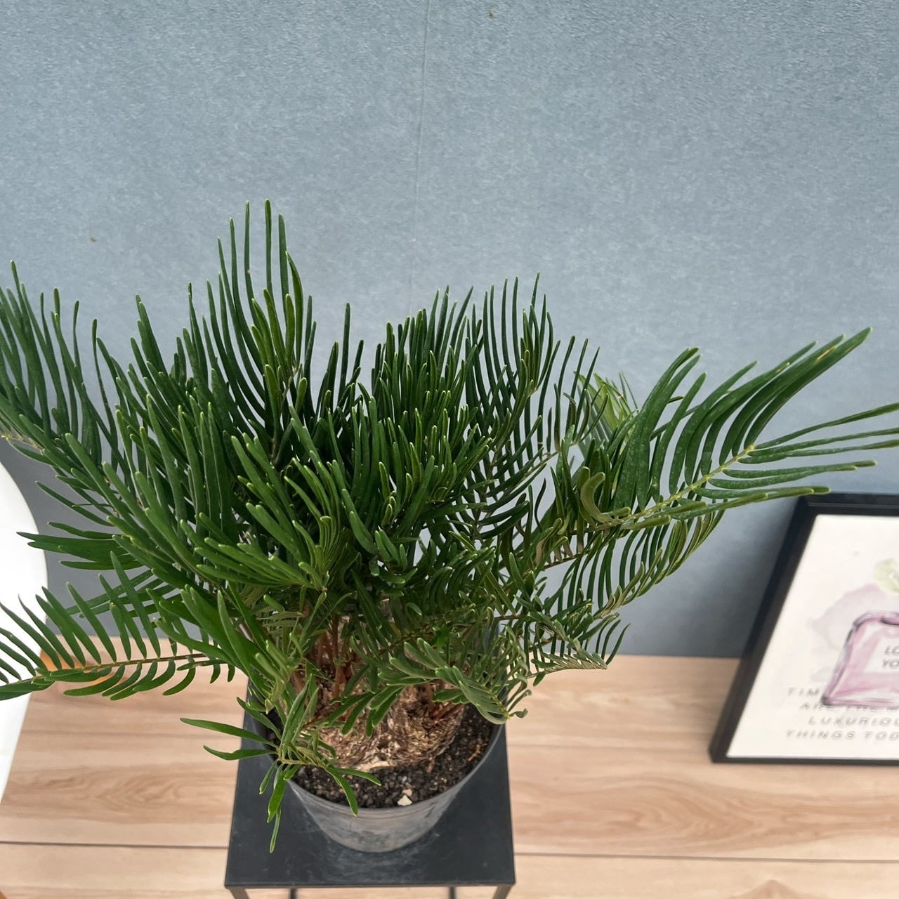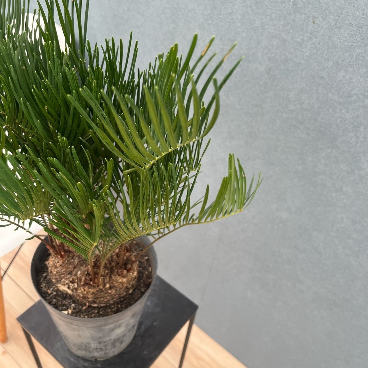 ザミアの中でも細葉が特徴的な、珍しい品種、ザミアフロリダーナです☆葉が柔らかく、穏やかな優し気な印象があります。他の観葉植物に比べて成長が緩やかなため、比較的長い間同じ大きさの状態を保てるのも魅力の一つです。