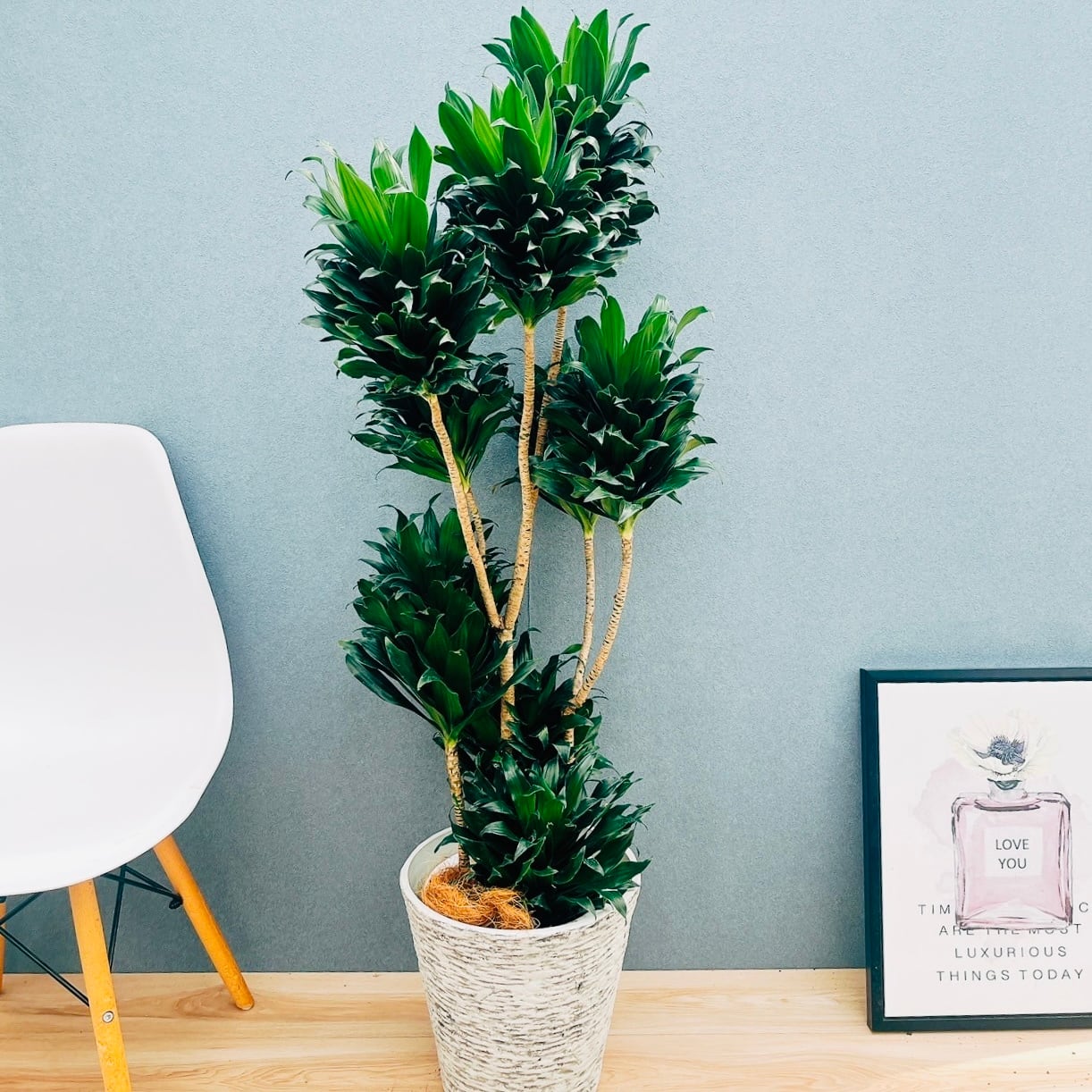 他のドラセナよりも成長が緩やかでコンパクトにまとまる品種で、密集してつく葉がとても美しい植物です。