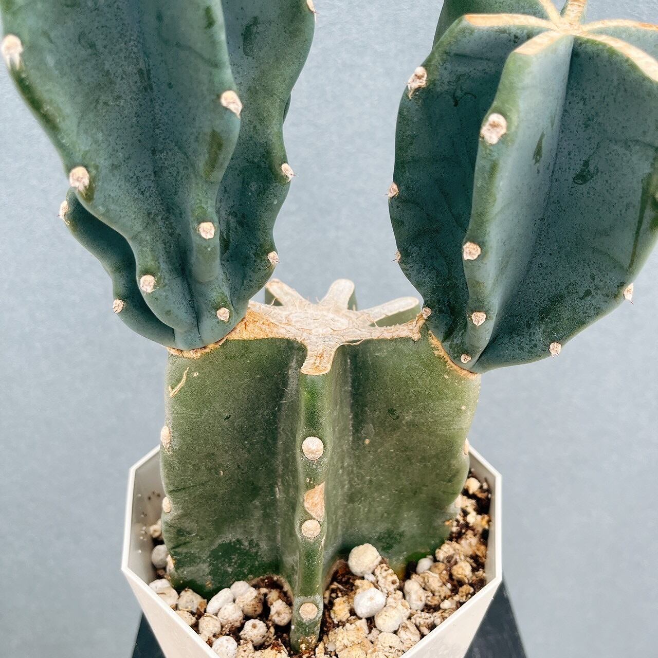 柱サボテン鬼面角は、鋭い棘がなく、丈夫で育てやすいため、サボテンを初めて育てられる方にもおすすめの品種です。こちらは、内側に伸びるブランチがとても可愛らしい一鉢です☆