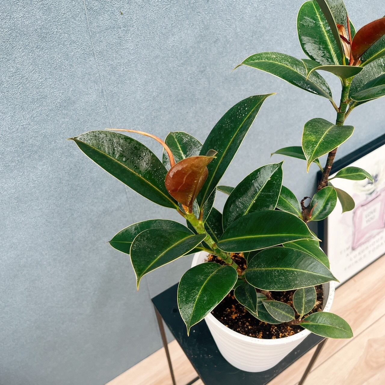 フィカスバーガンディによく似ていますが、バーガンディよりも細長く、コンパクトな葉をしています。