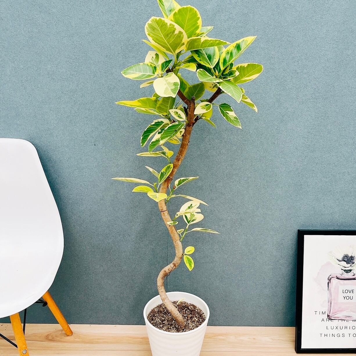 フィカスアルテシマは、ゴムの木の仲間で育てやすく、初めて植物を育てられる方にもおすすめの品種で、『永遠の幸せ』という花言葉を持つことから新築祝いや開店祝い等にもおすすめの植物です。