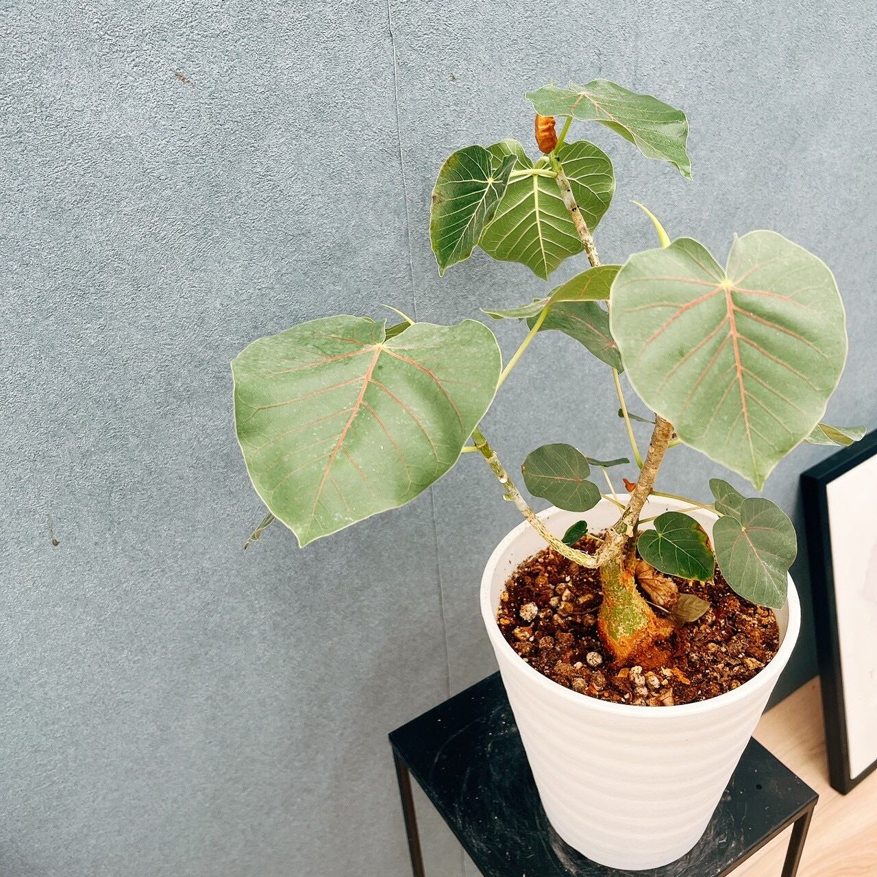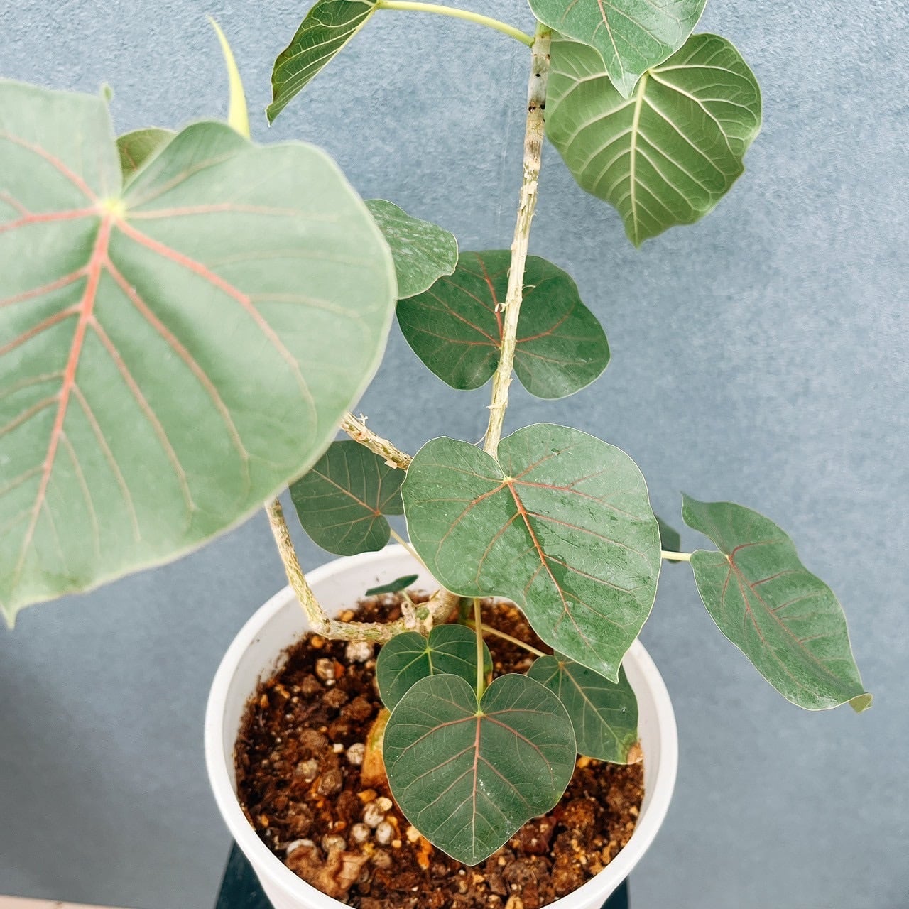ハート型の葉に、赤色の葉脈が個性的で可愛いゴムの木、フィカスペティオラリスです☆