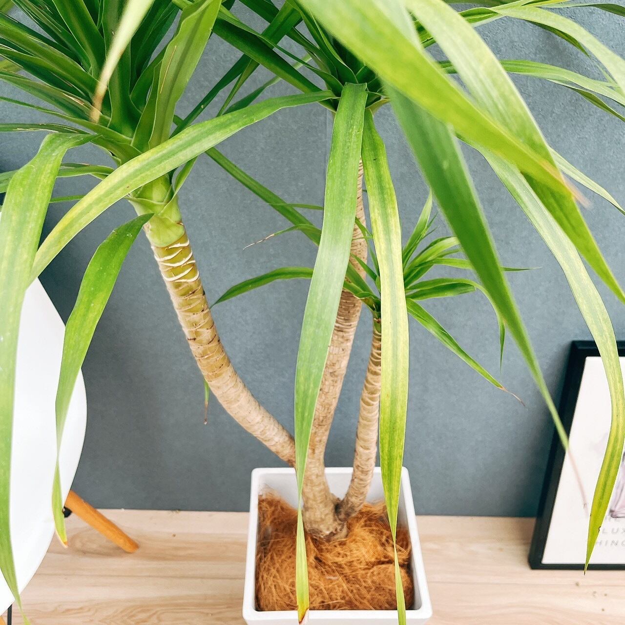 『幸福の木』とも呼ばれているドラセナの一種で、こちらは鉢カバー付きになります。