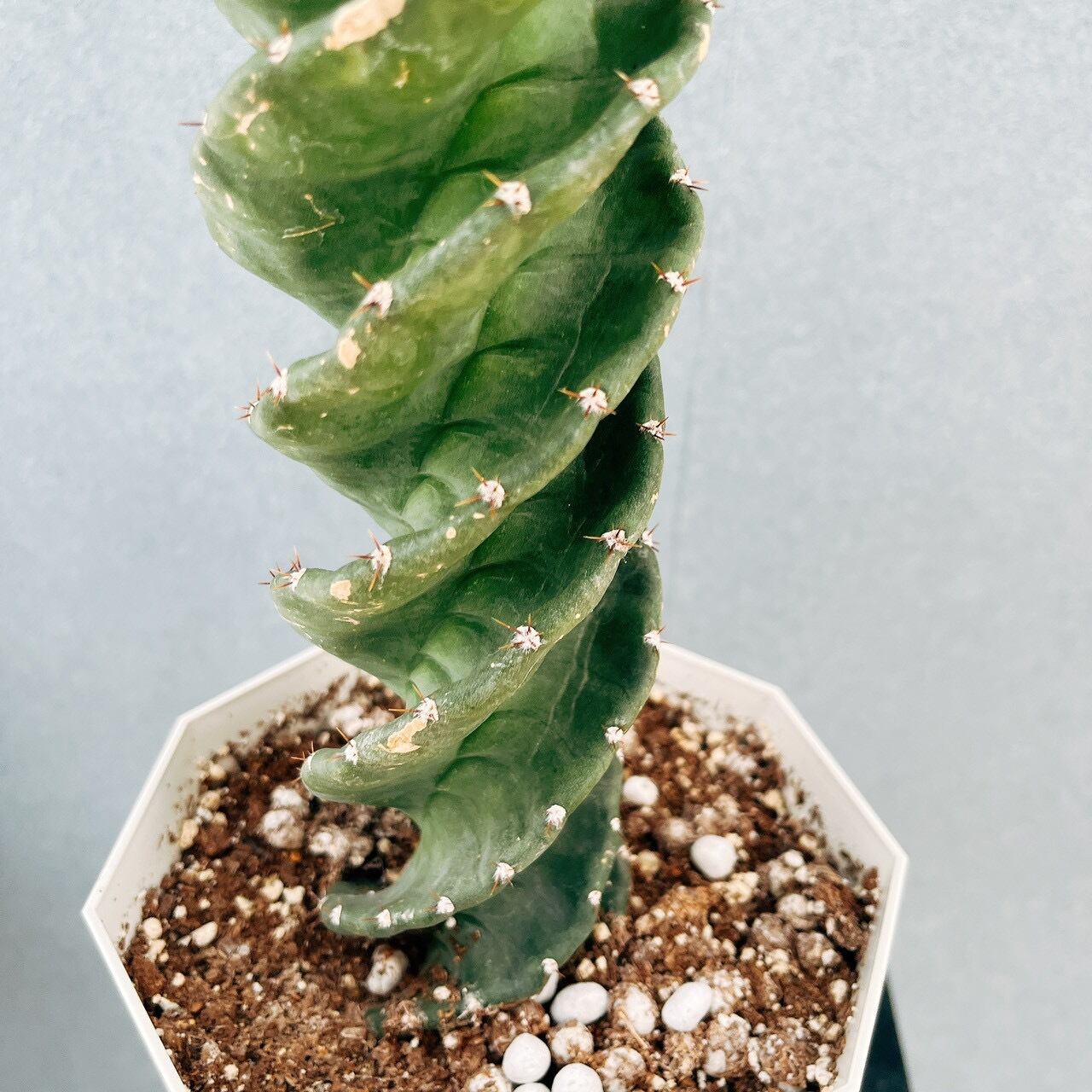 柱サボテン鬼面角の変種、螺旋状に捻れた姿がとてもユニークでおしゃれな品種、セレウスペルビアナススピラリスです☆個体一つ一つ形が異なり、とても独特な姿をしています。