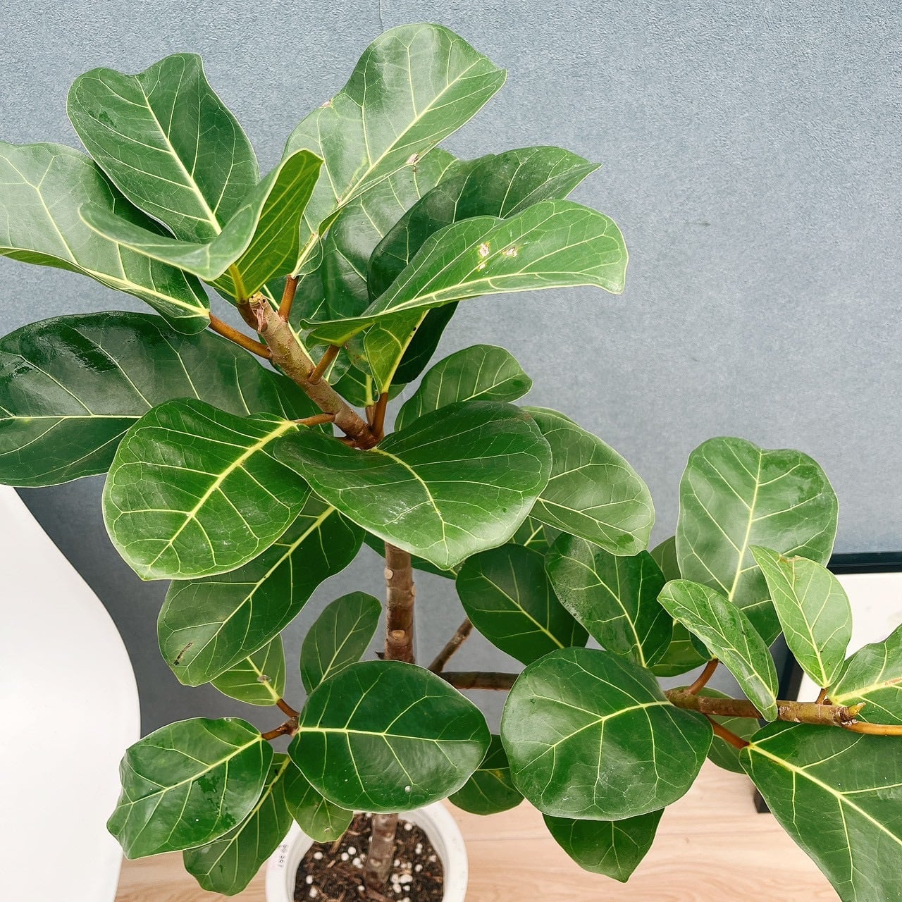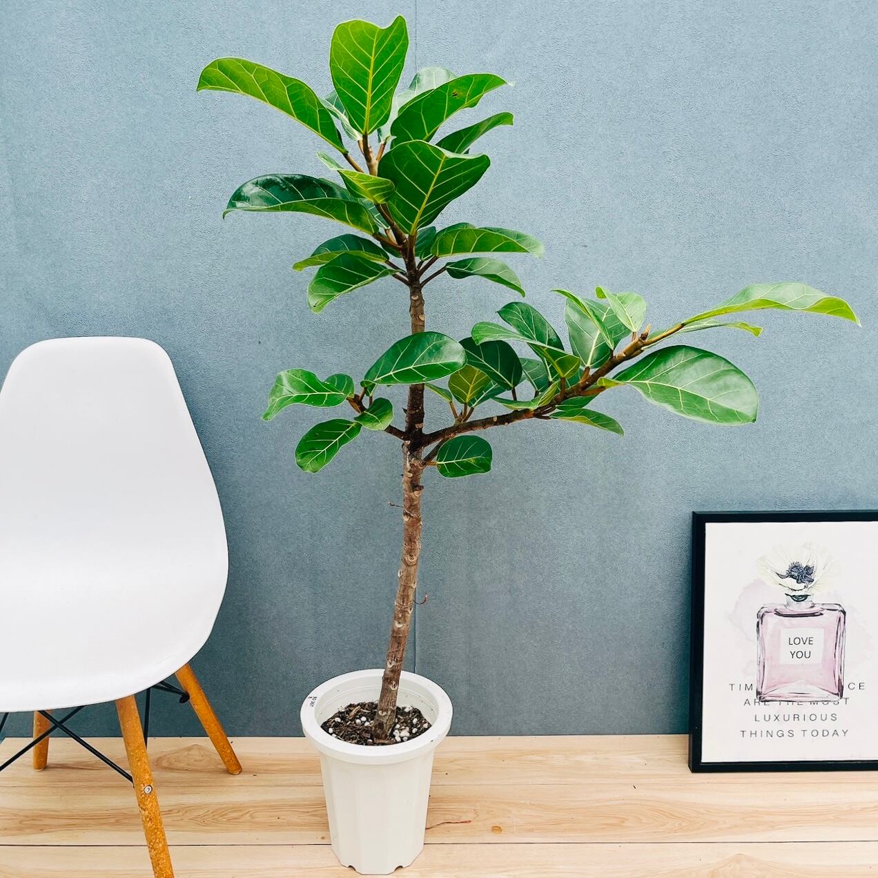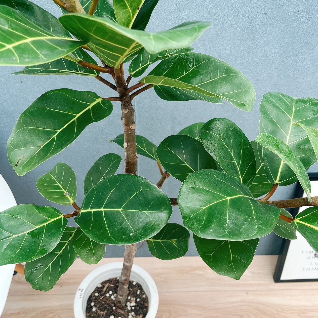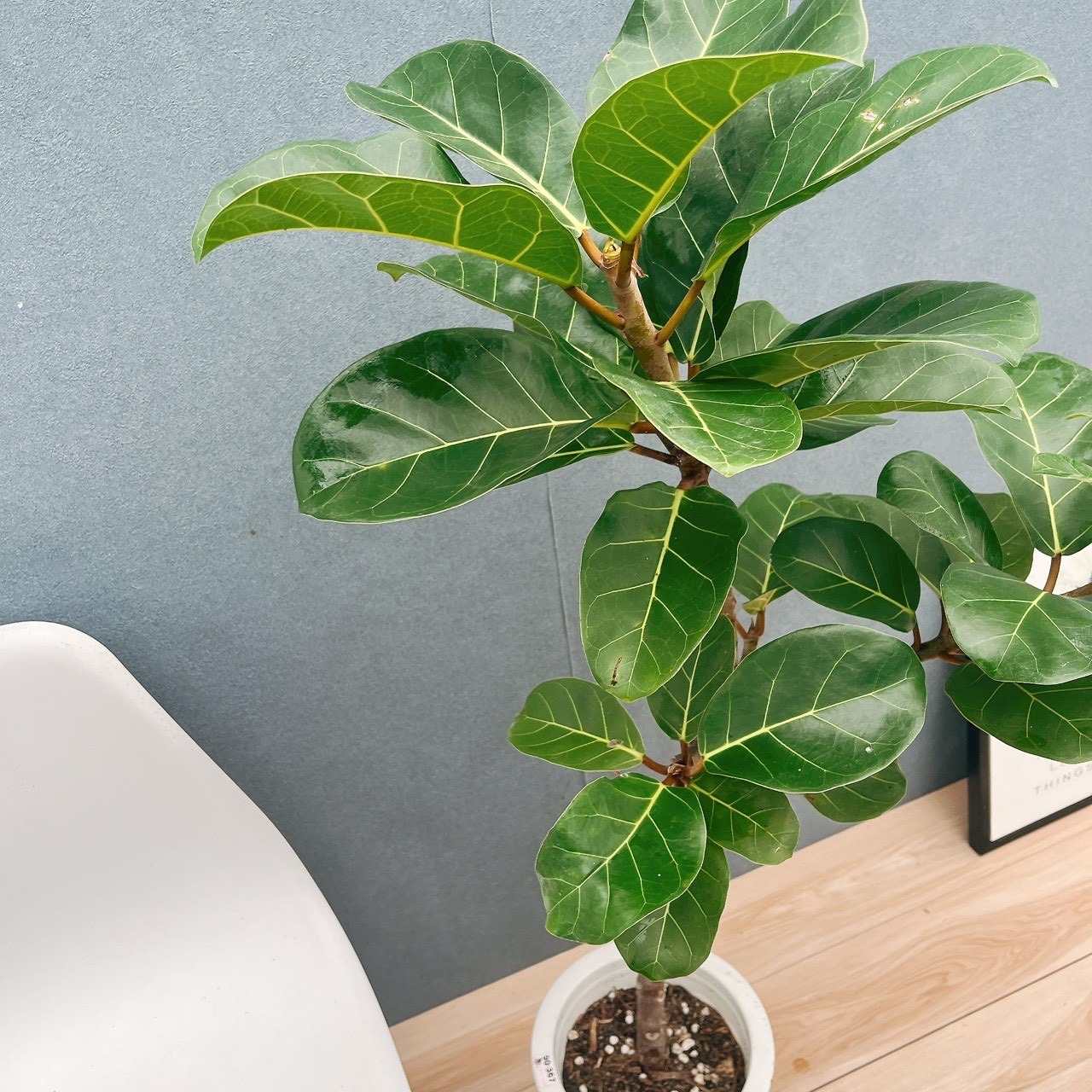 深緑色の艶々とした大きめの葉がおしゃれでかっこいい品種で、『永遠の幸せ』というゴムの木共通の花言葉を持ちます。