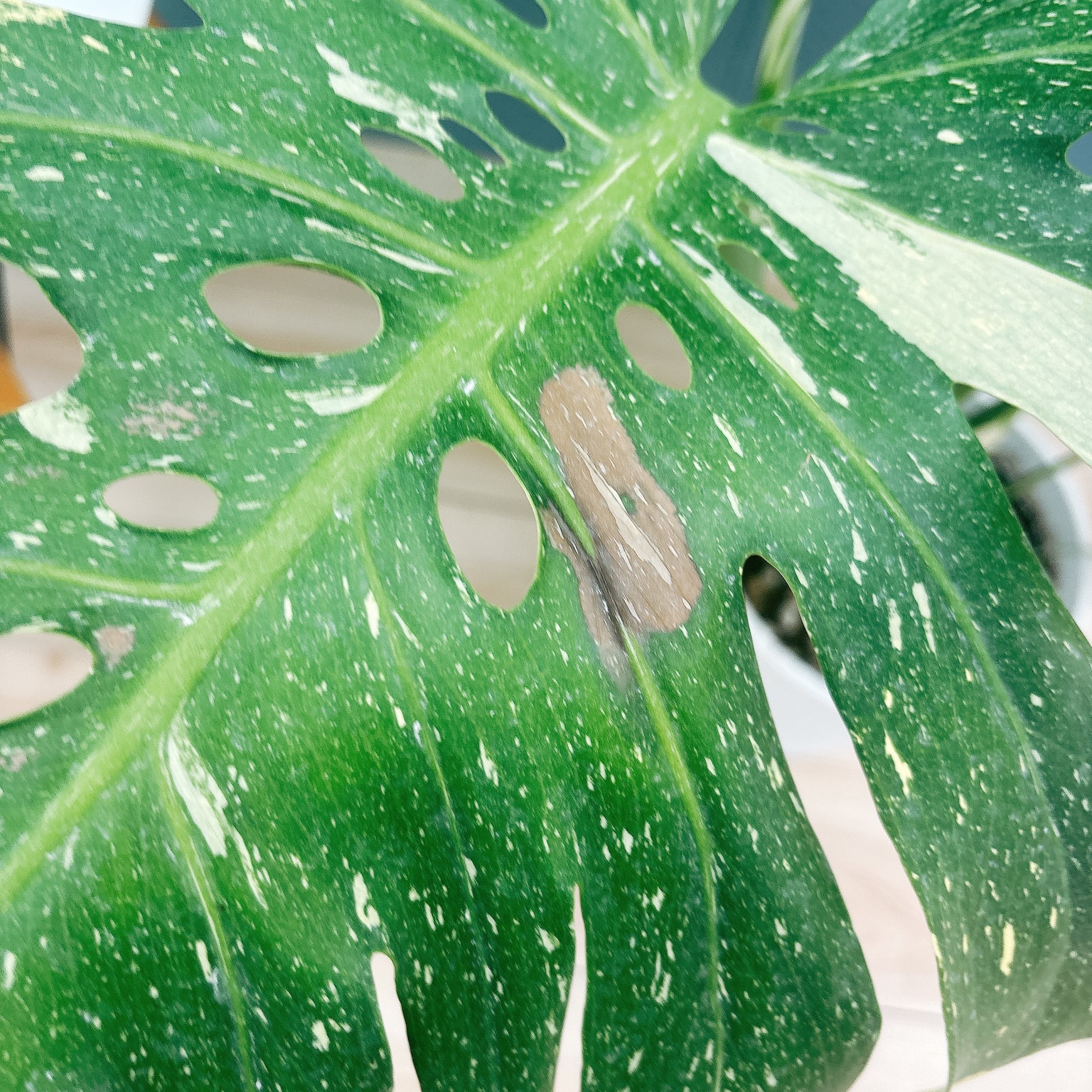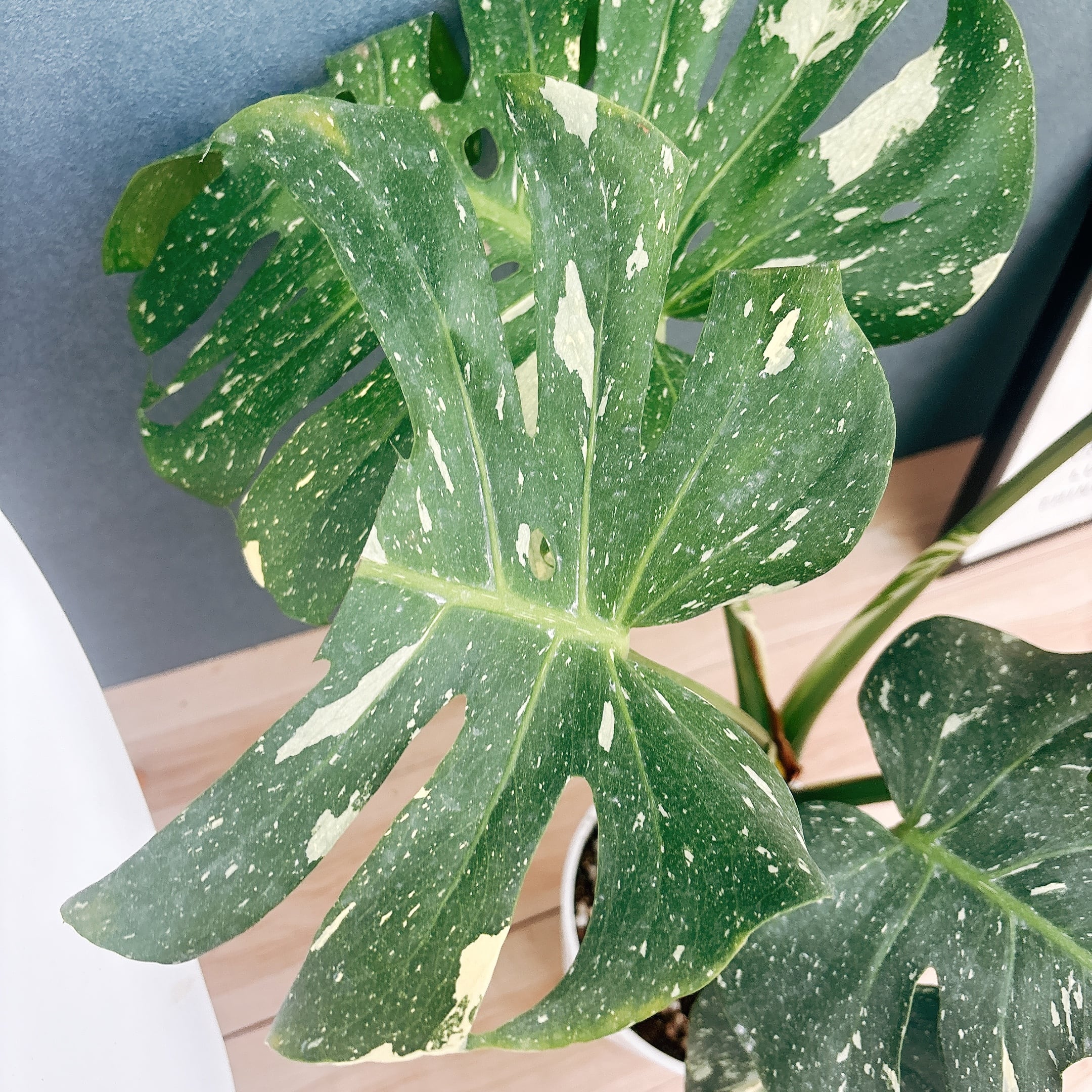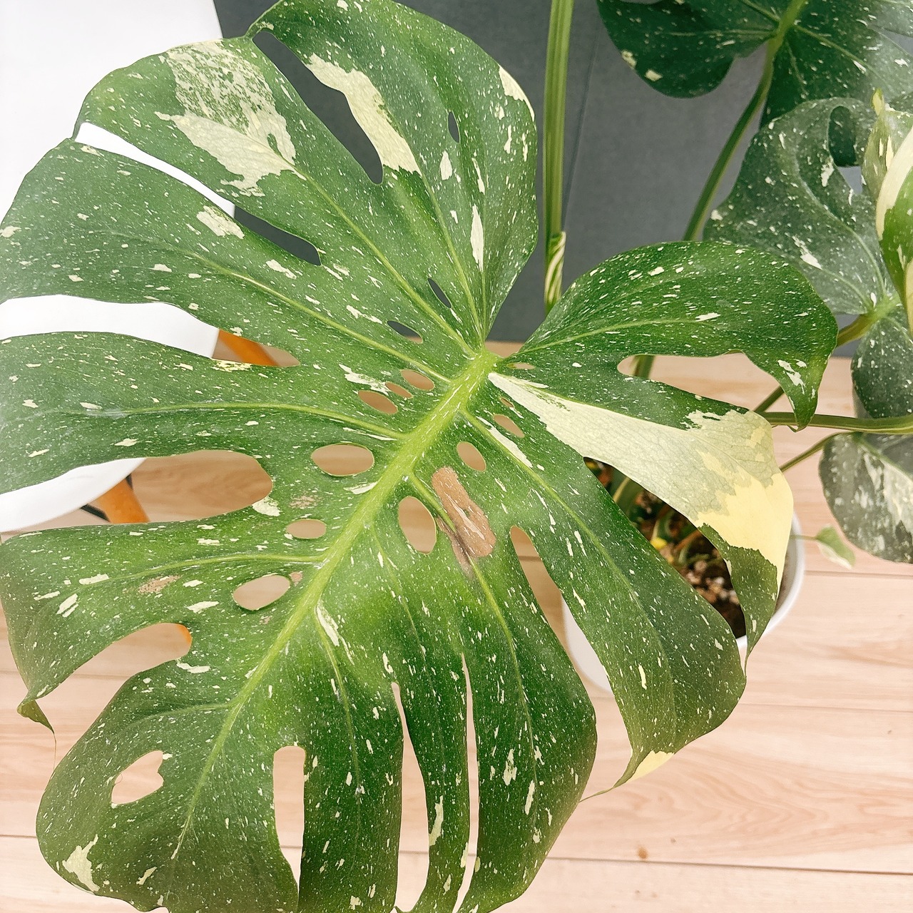 斑入りモンステラは、散り斑や斑等様々な葉を持ち、葉の一枚一枚に個性がある、とても魅力的で面白い品種です。
