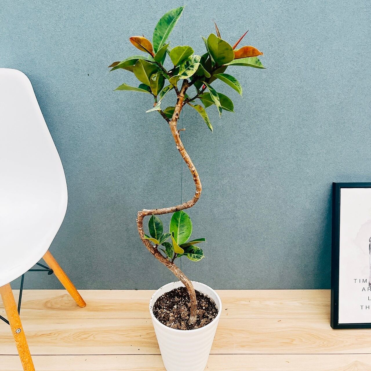 新芽〜古葉にかけて葉の色の移り変わりが楽しめる面白い品種で、こちらは、曲がりが綺麗なおすすめの一鉢です!