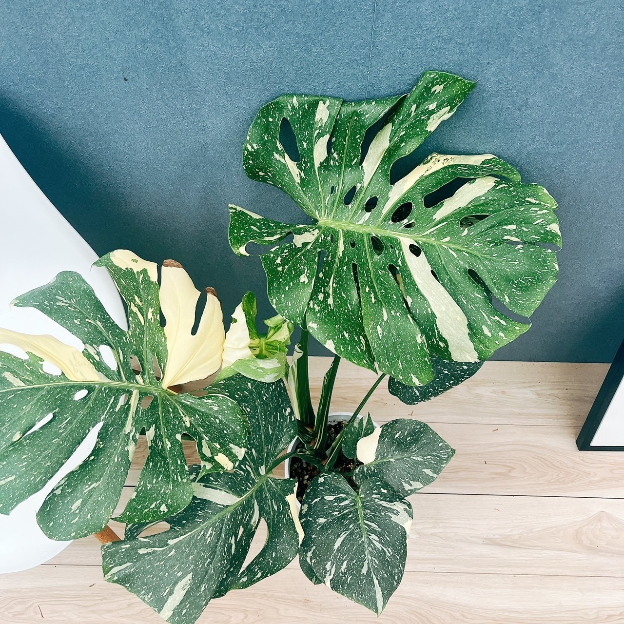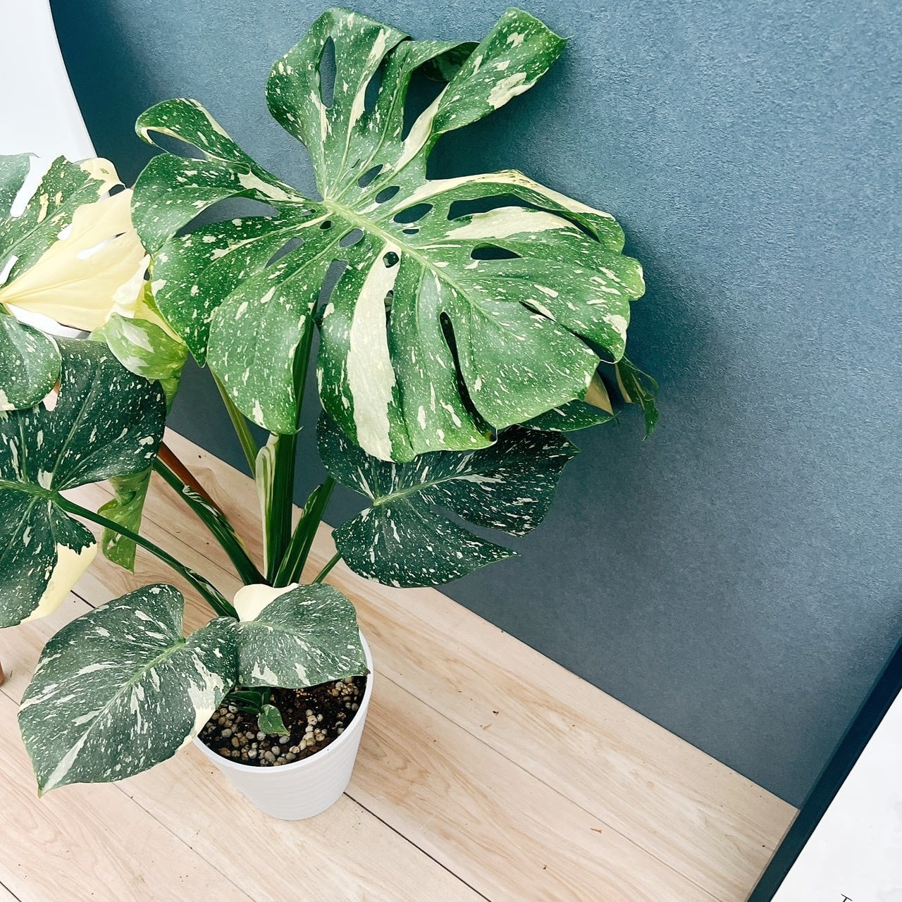 斑入りモンステラは、散り斑や白斑等様々な葉を持ち、葉の一枚一枚に個性がある、とても魅力的で面白い品種です。
