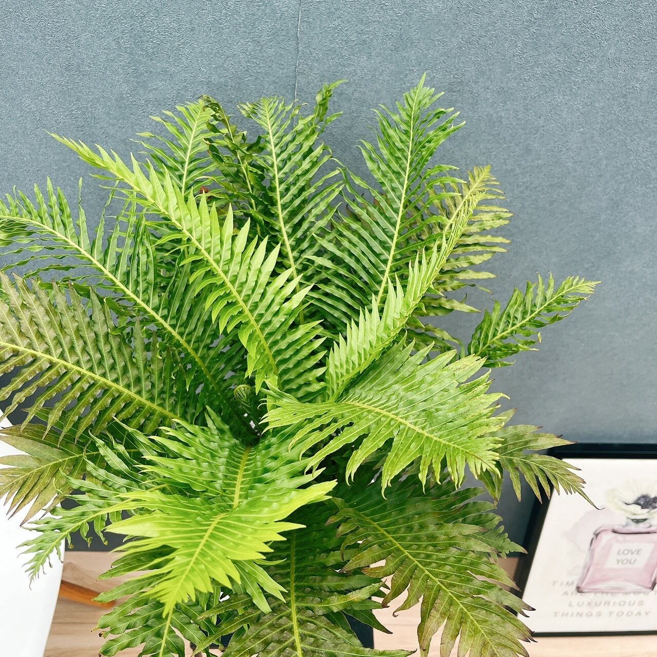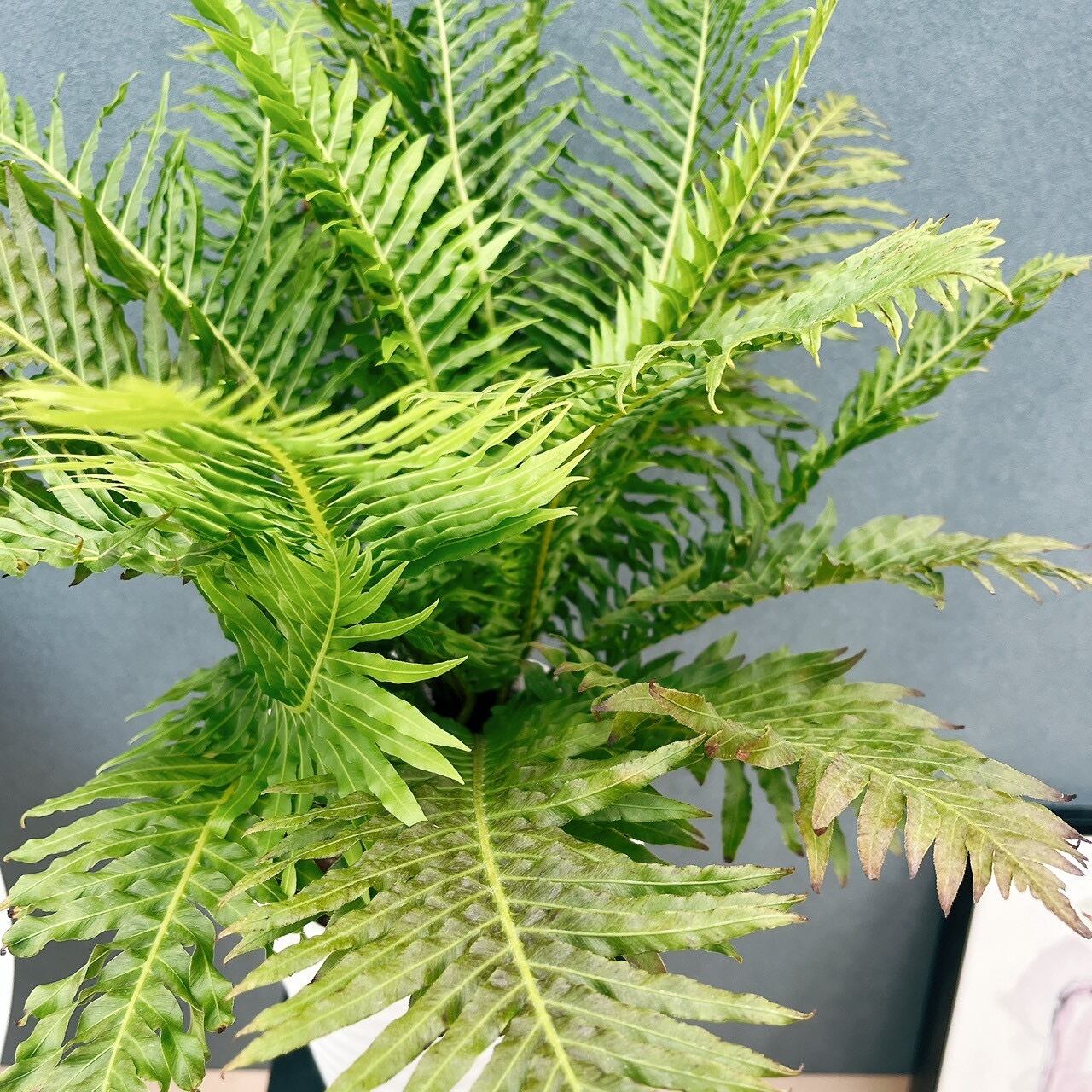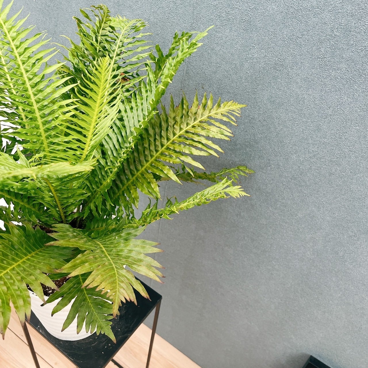 葉はしっかりとしたグリーンで、ヤシのようにコンパクトに展開するため、ちょこっと南国風の雰囲気を演出したい空間におすすめですよ♪