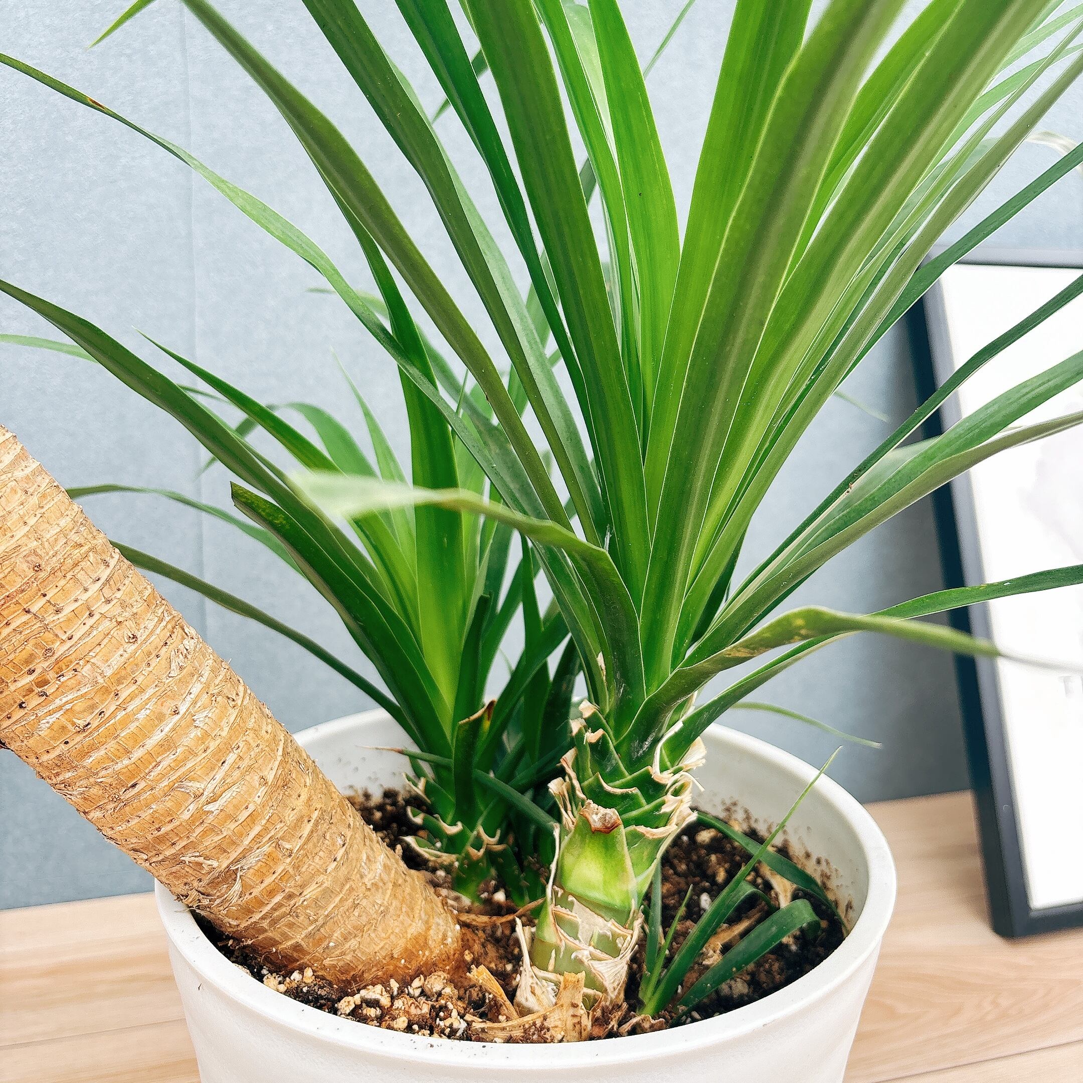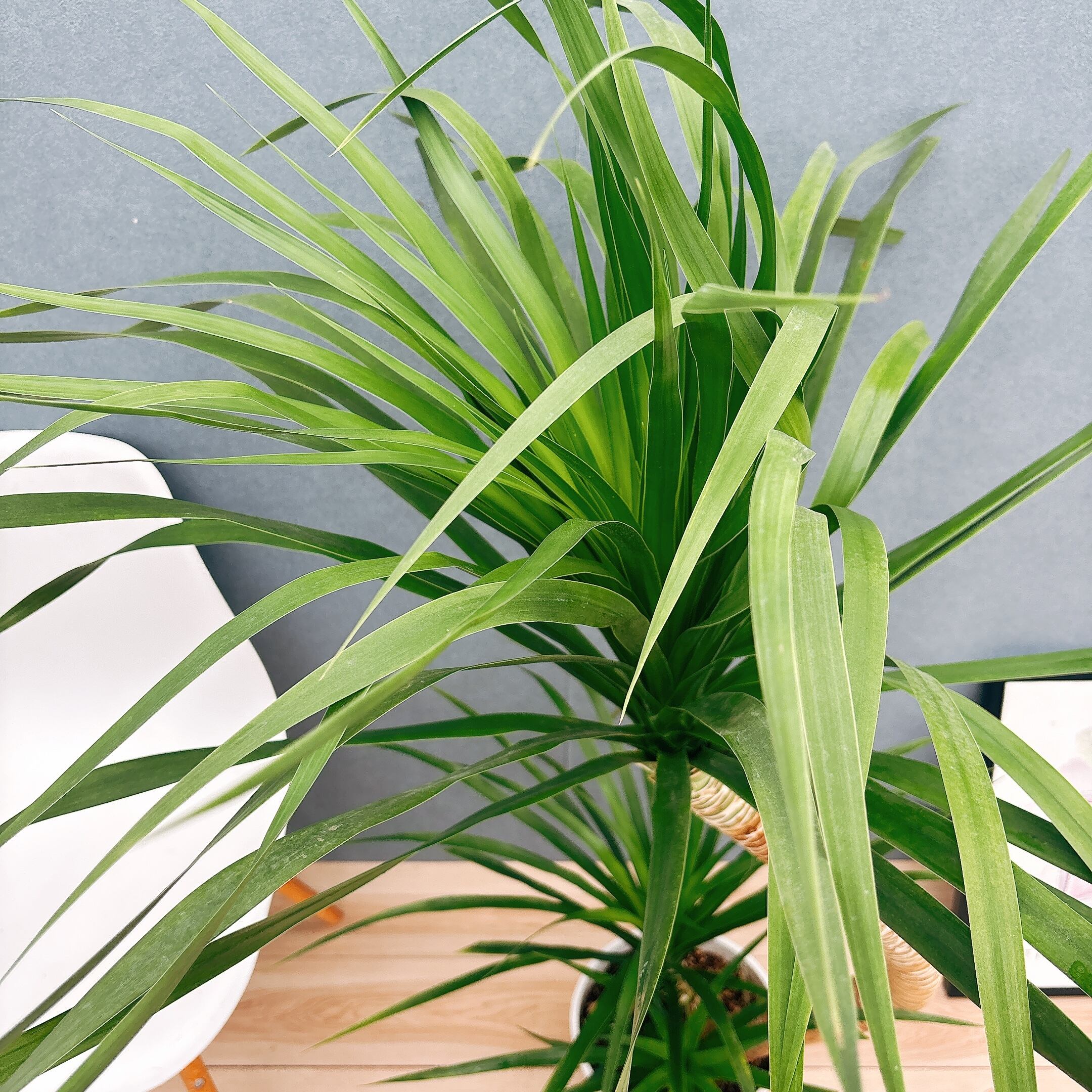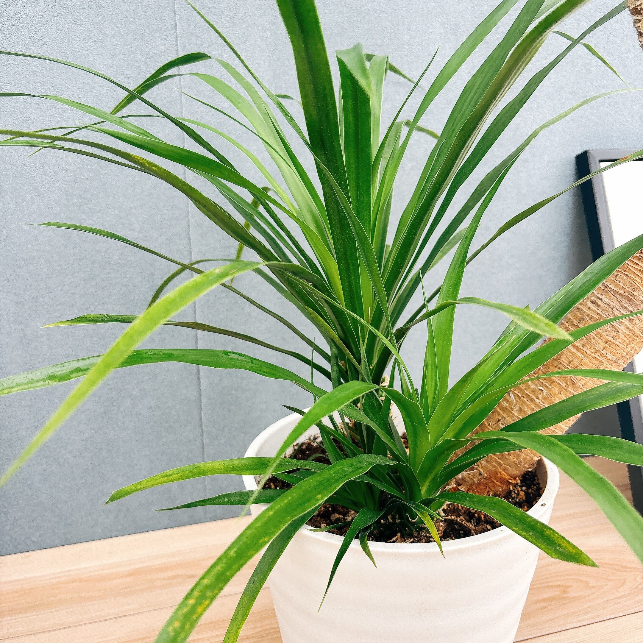 カンボジアーナは、きれいな緑色の細長い葉っぱが、成長と共に緩やかな曲線を描くように垂れ下がる植物で、とても優雅な姿をしています☆