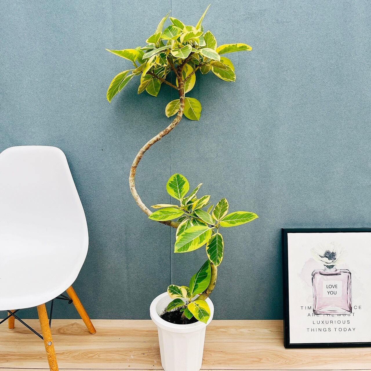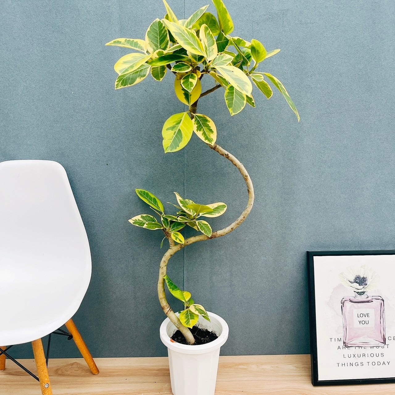 [現品]60番 フィカス アルテシマ 曲がり 8号 観葉植物 室内 大型 ゴムの木 おしゃれ かわいい 斑入り
