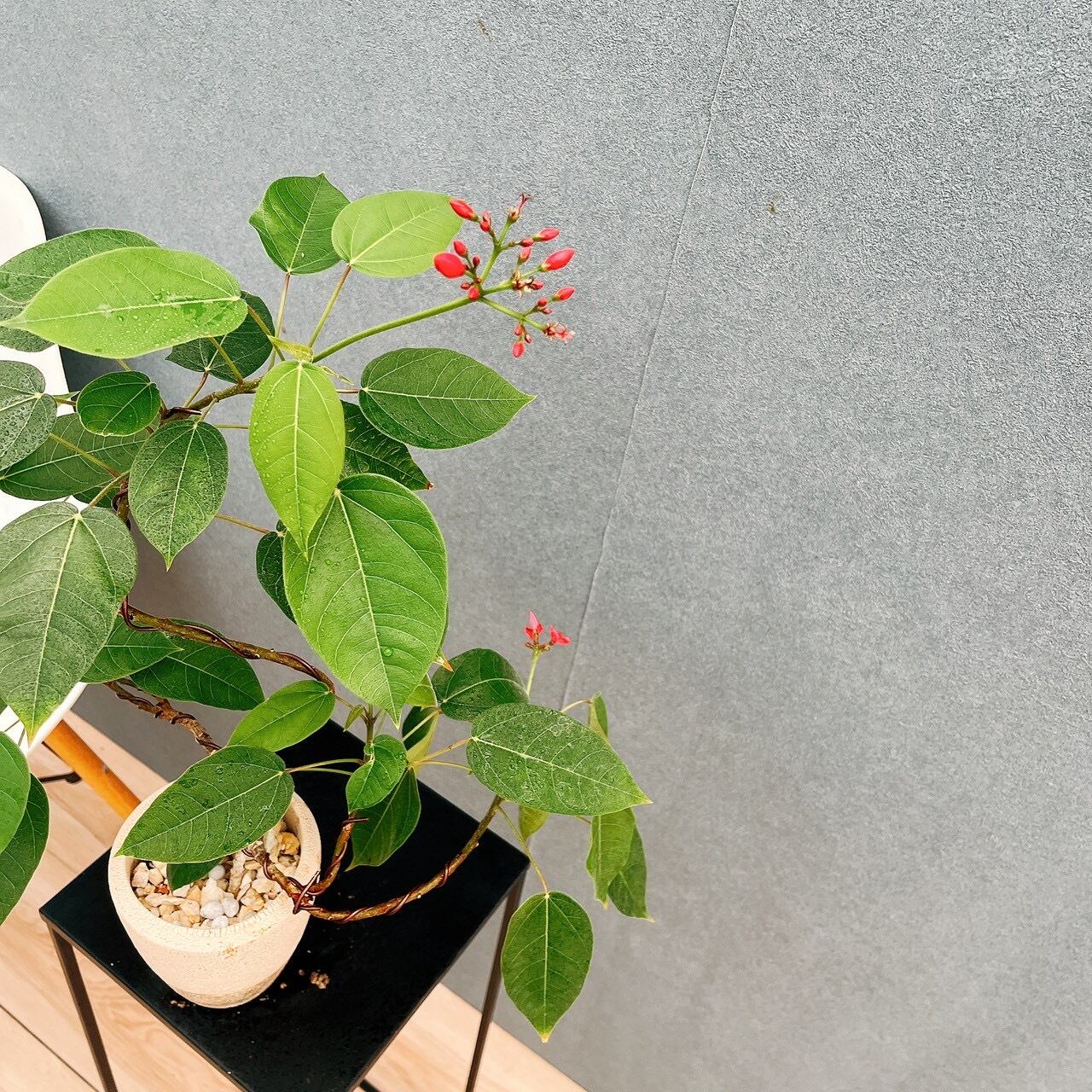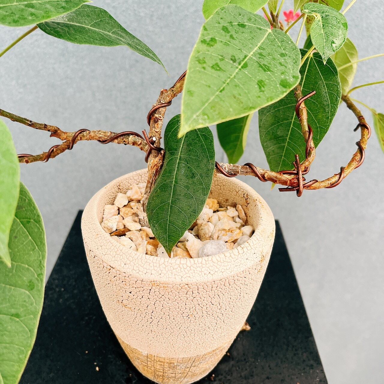 今回は和の雰囲気のあるベージュの陶器鉢と合わせてみました。