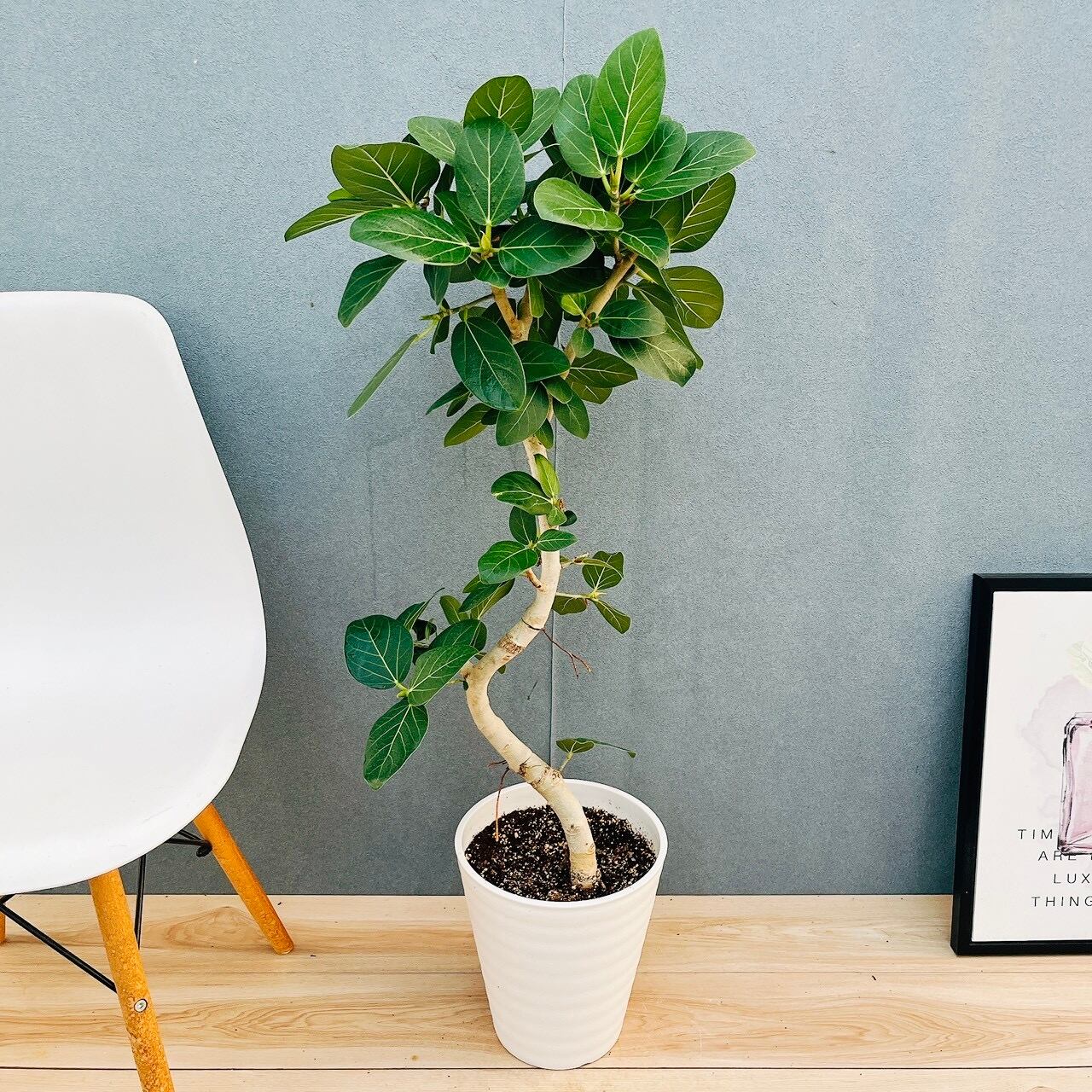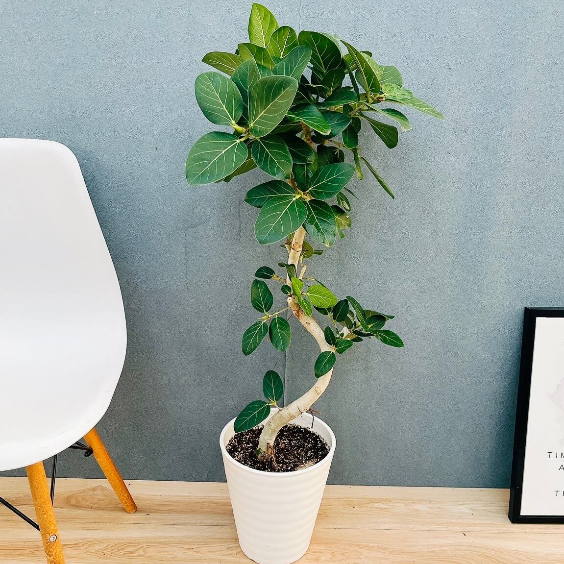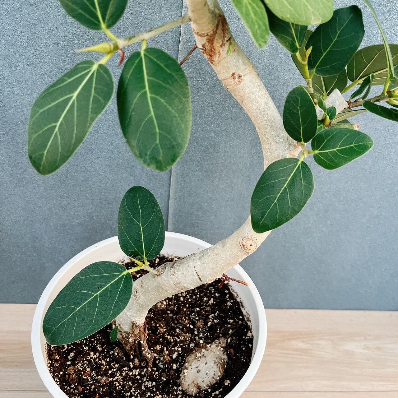 濃いめのグリーンの卵型の葉がおしゃれな、フィカスベンガレンシスの曲がりです☆