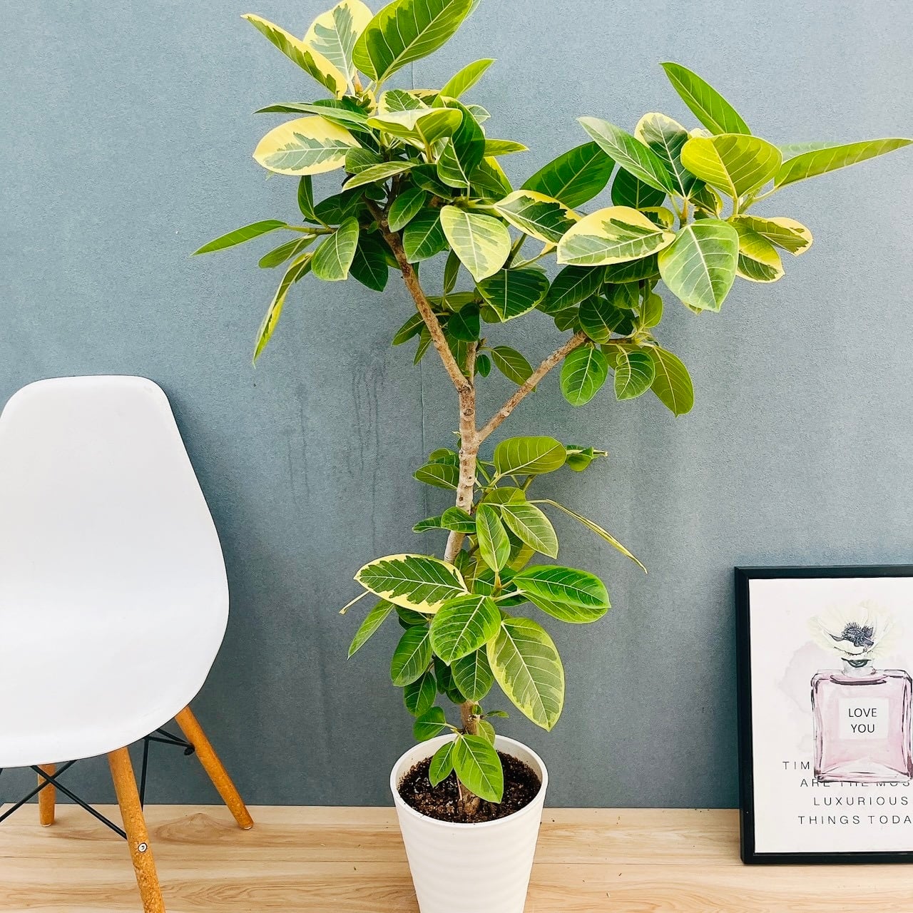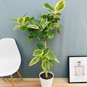 フィカスアルテシマは、ゴムの木の仲間で育てやすく、初めて植物を育てられる方にもおすすめの品種で、『永遠の幸せ』という花言葉を持つことから新築祝いや開店祝い等にもおすすめの植物です。