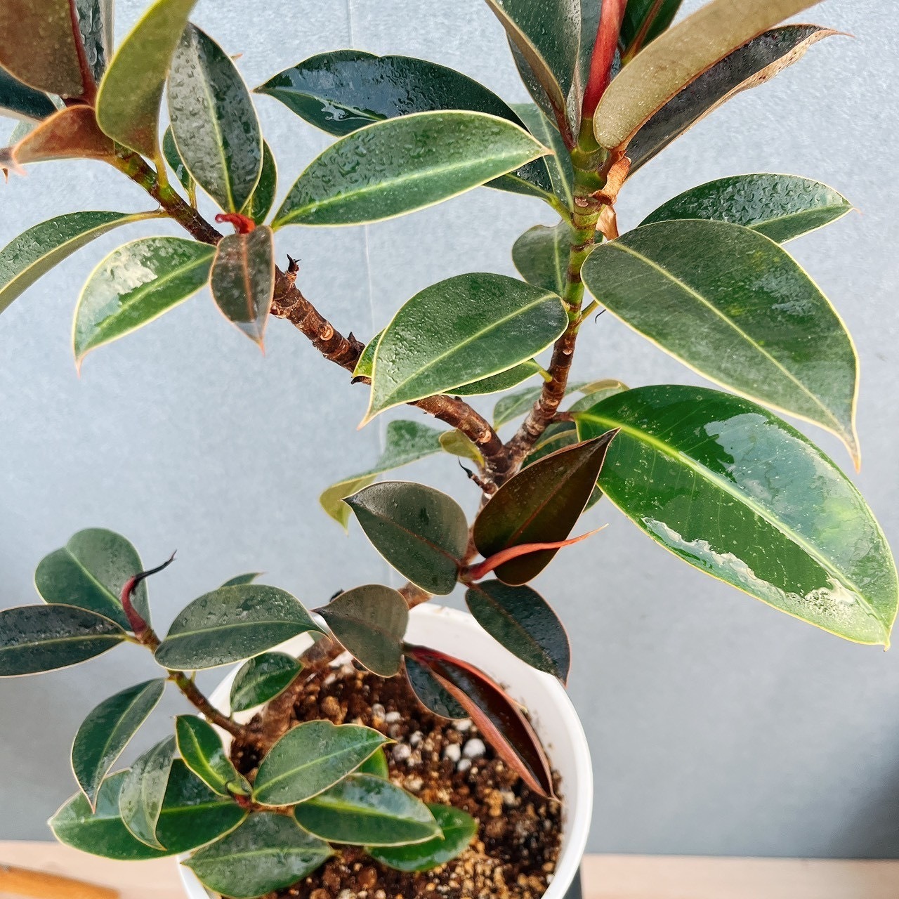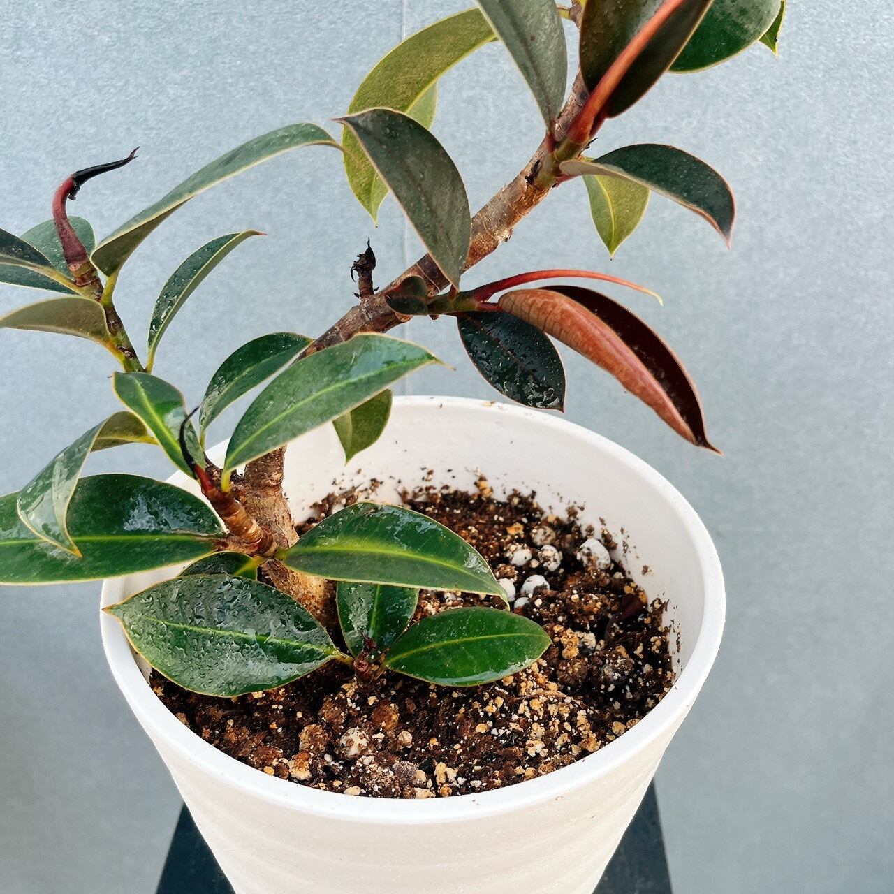 フィカスバーガンディよりも細長く、コンパクトな葉をしています。初心者の方でも育てやすく、プレゼントとしてもおすすめの品種です!