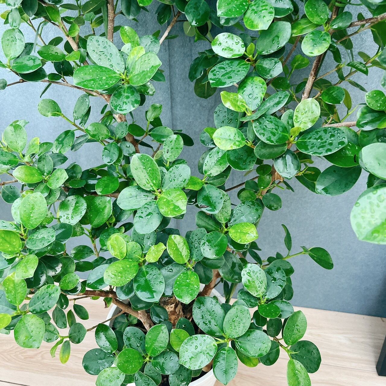 当店人気商品、光沢のある丸くて可愛らしい葉が魅力的な品種、パンダガジュマルです☆