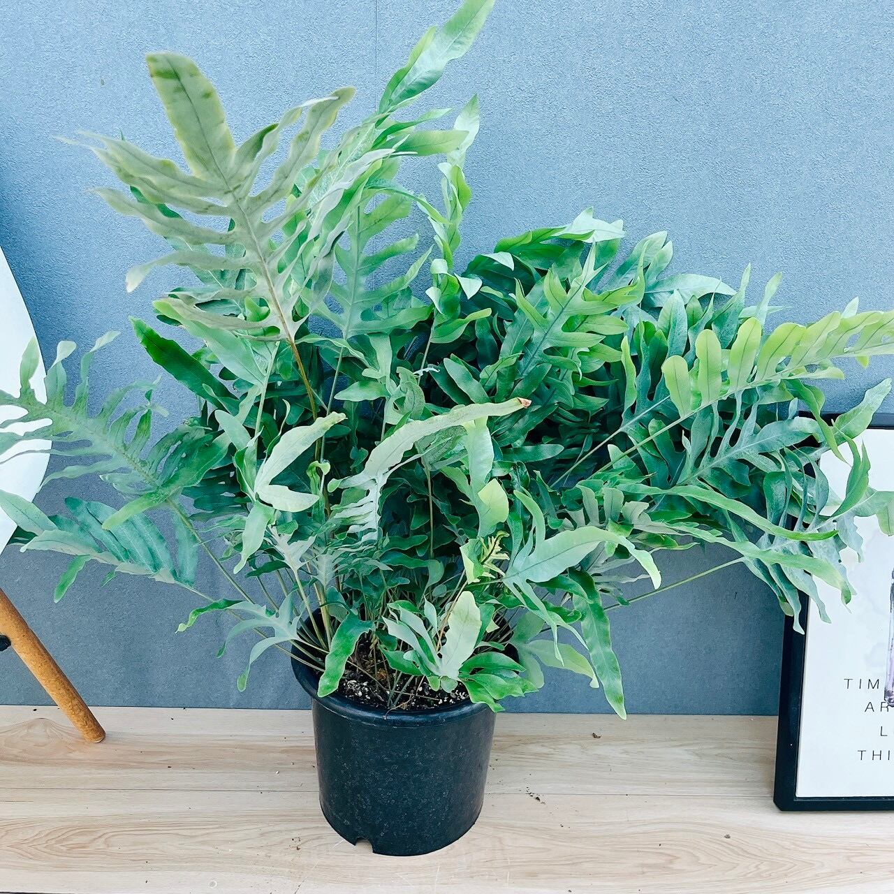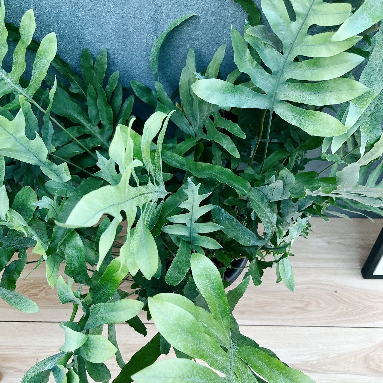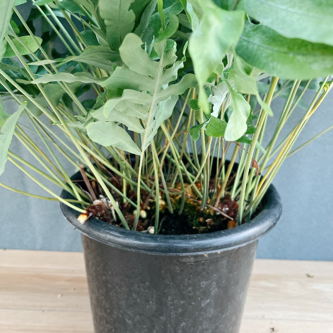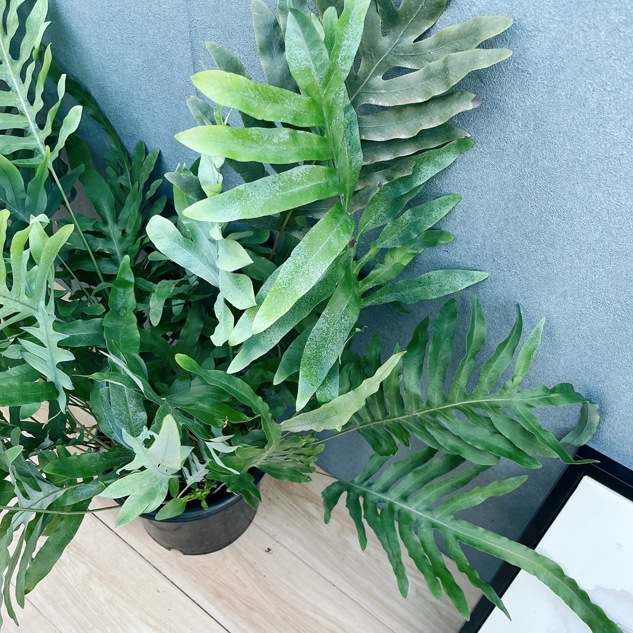 シルバーブルーのヒラヒラとした海藻のようなユニークな葉を持つシダ植物、フレボディウムオーレムブルースターです☆