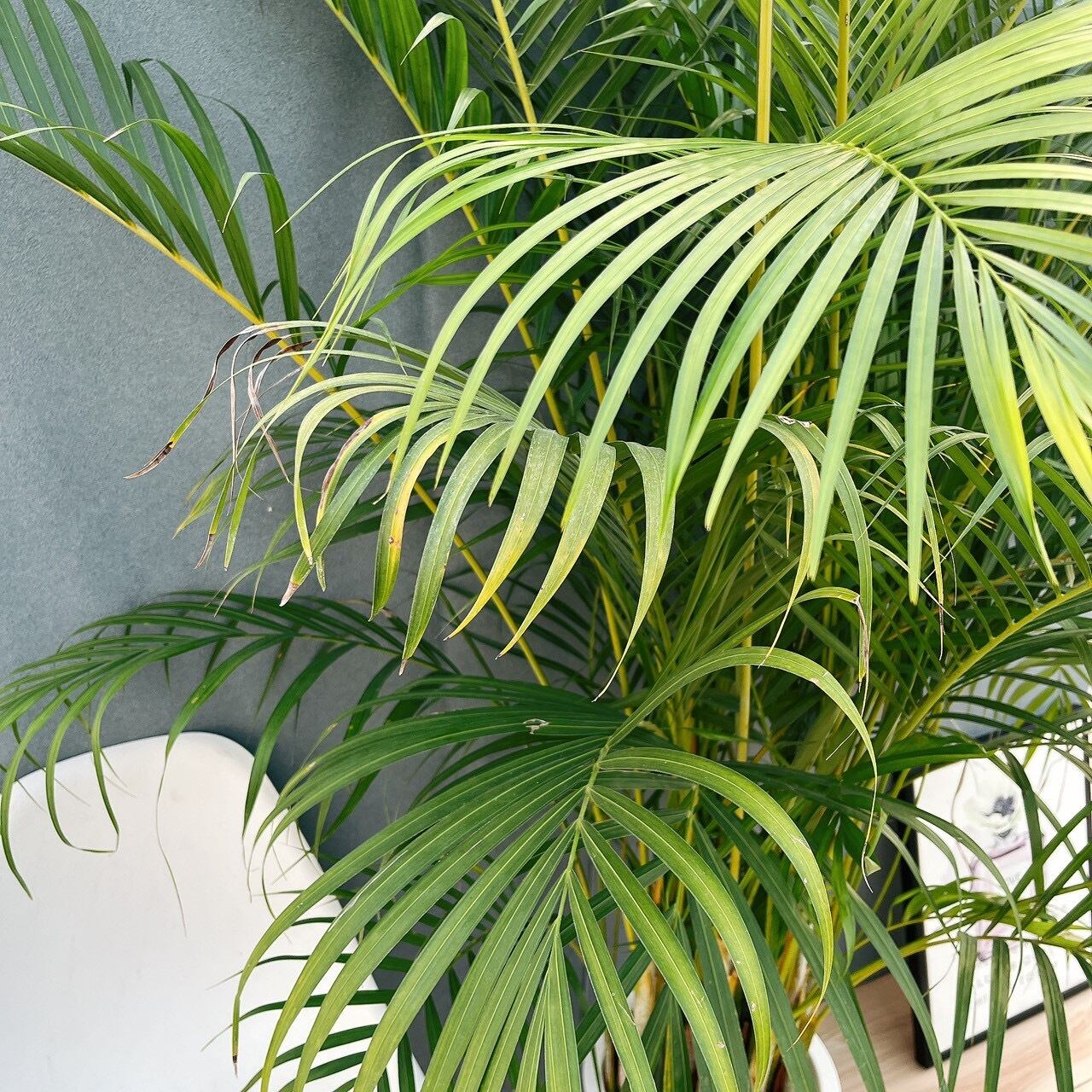 『元気』や『勝利』を花言葉に持つアレカヤシは、花言葉の通り、放射線状に広がる活き活きとした元気な葉っぱが特徴的な植物です☆