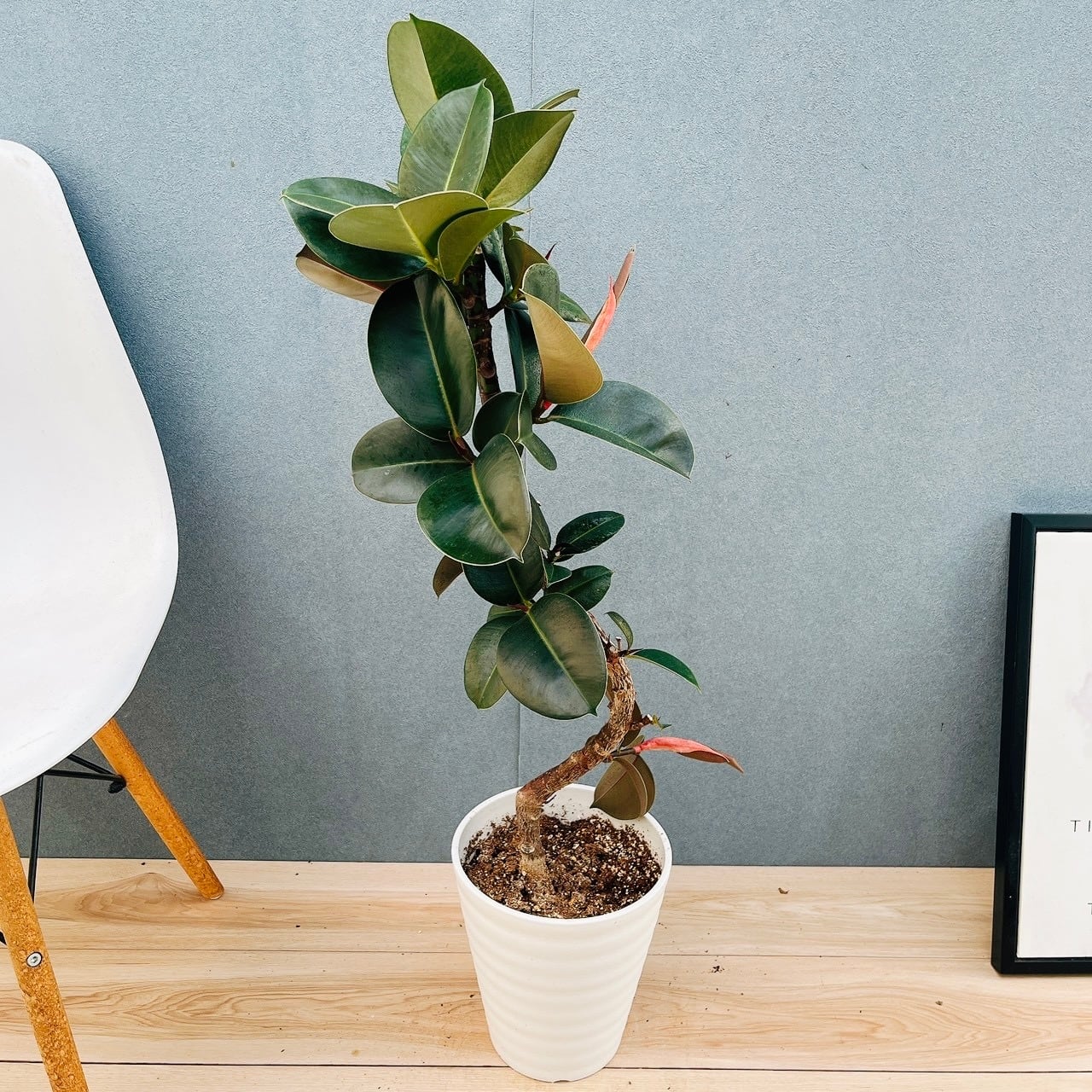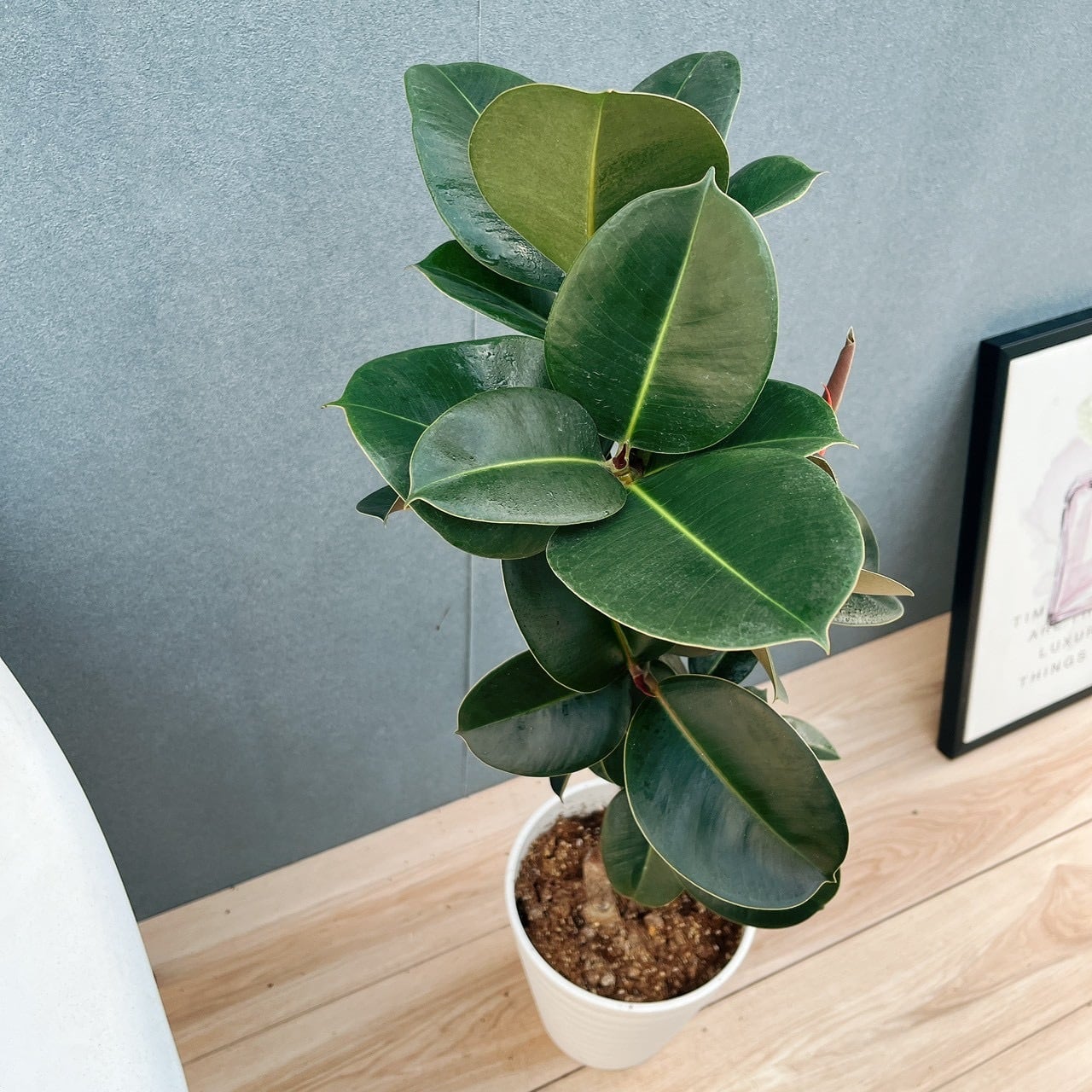ゴムの木の仲間で、初心者の方でも育てやすく、管理しやすい品種です。フィカスバーガンディによく似ていますが、バーガンディよりもやや小さめで光沢のある深緑色の葉をしています。葉が密につく姿もおしゃれで魅力的です。
