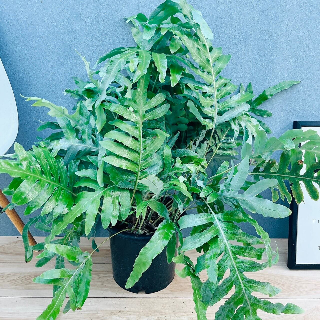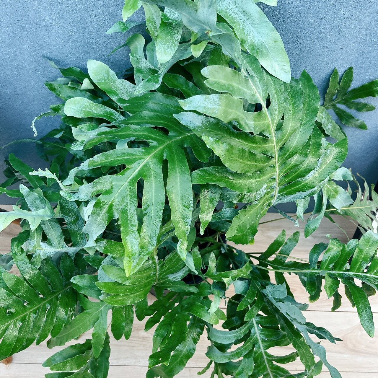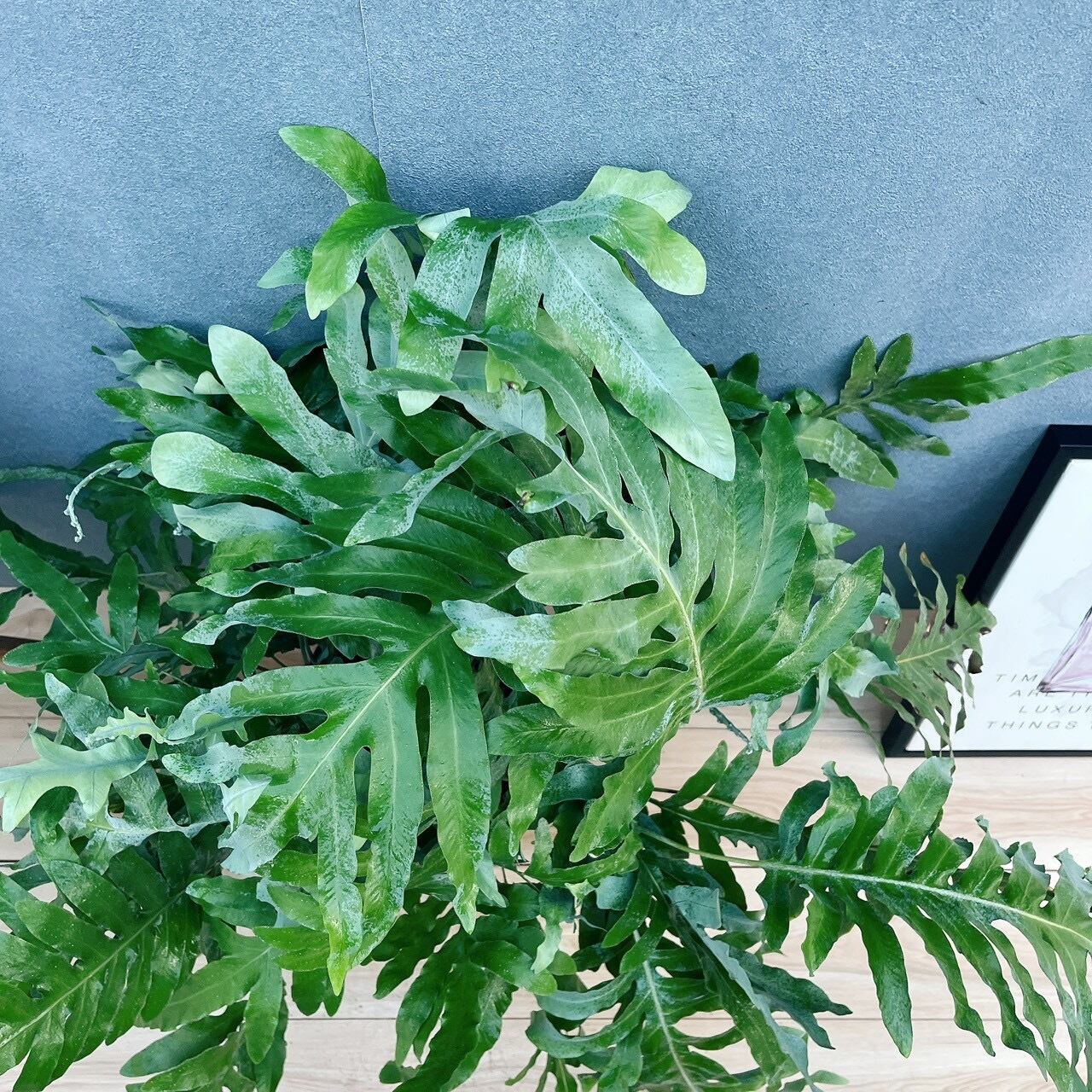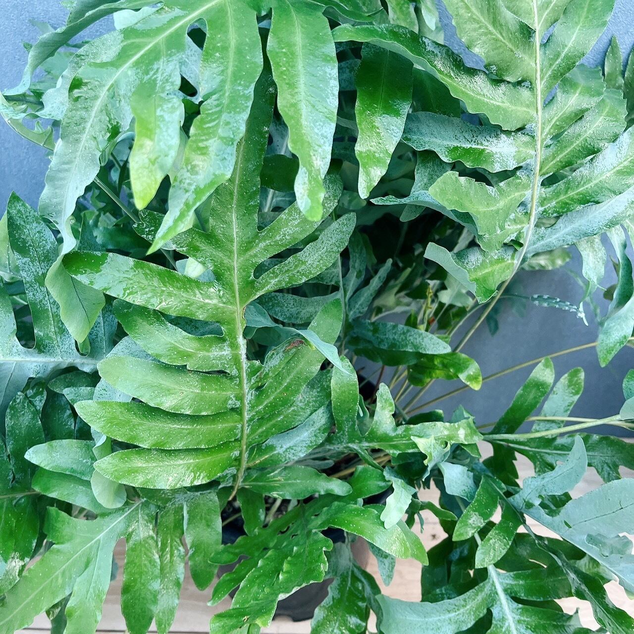 シルバーブルーのヒラヒラとした海藻のようなユニークな葉を持つシダ植物、フレボディウムオーレムブルースターです☆
