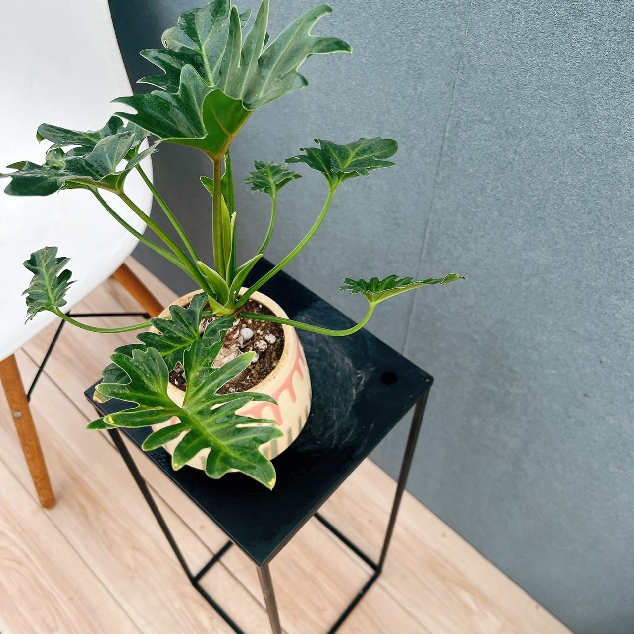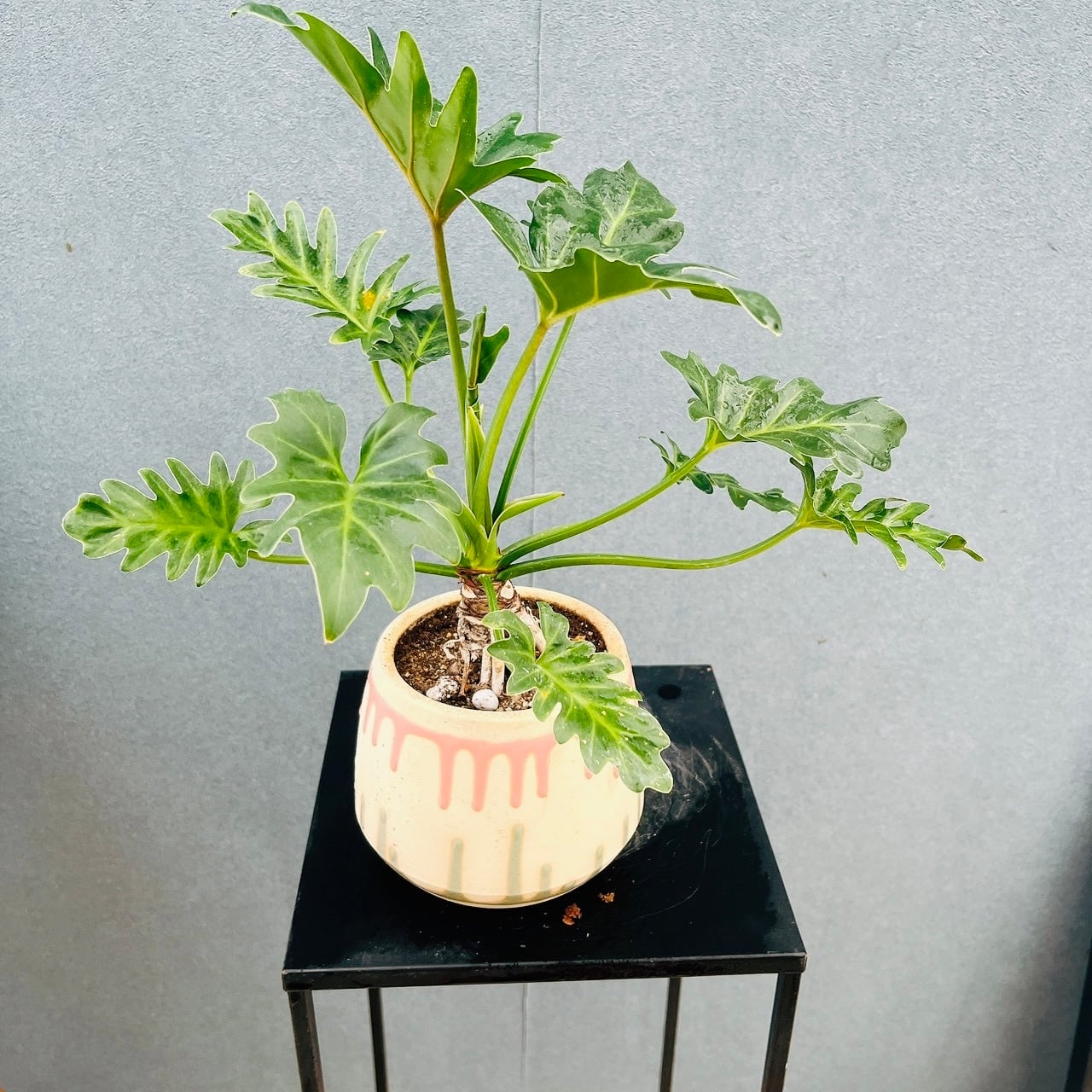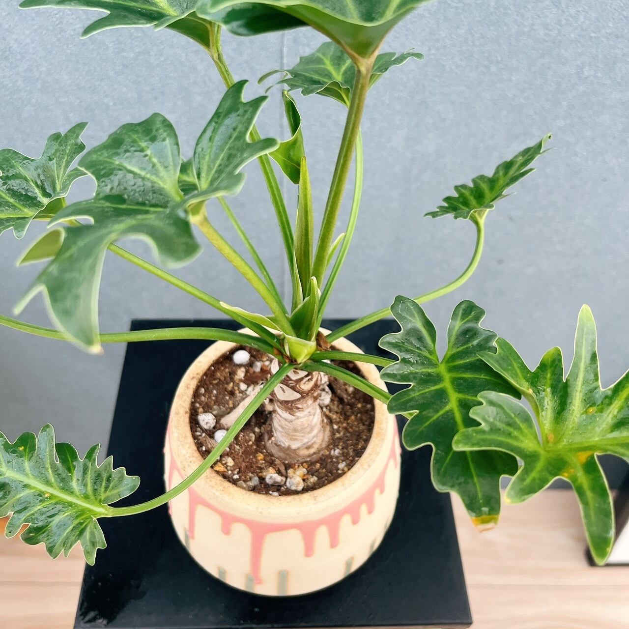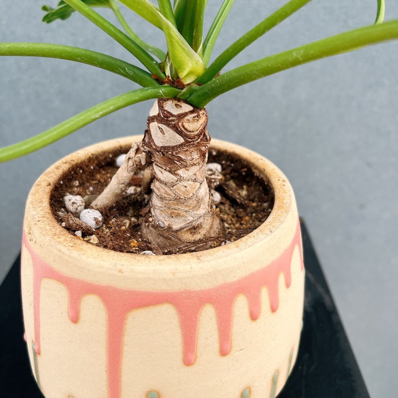 今回は、ユニークで可愛らしい色合いの陶器鉢と合わせてみました♪