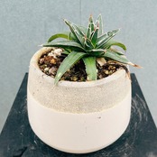 [現品]アガベ 笹の雪 観葉植物 ミニサイズ 可愛い おしゃれ 屋外 多肉植物 陶器鉢受け皿付き ホワイト×グレー