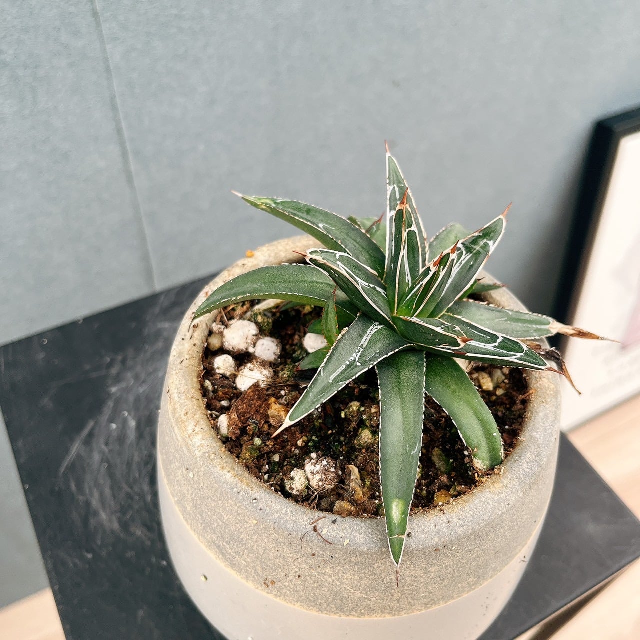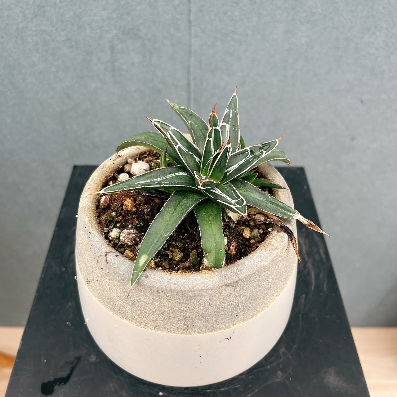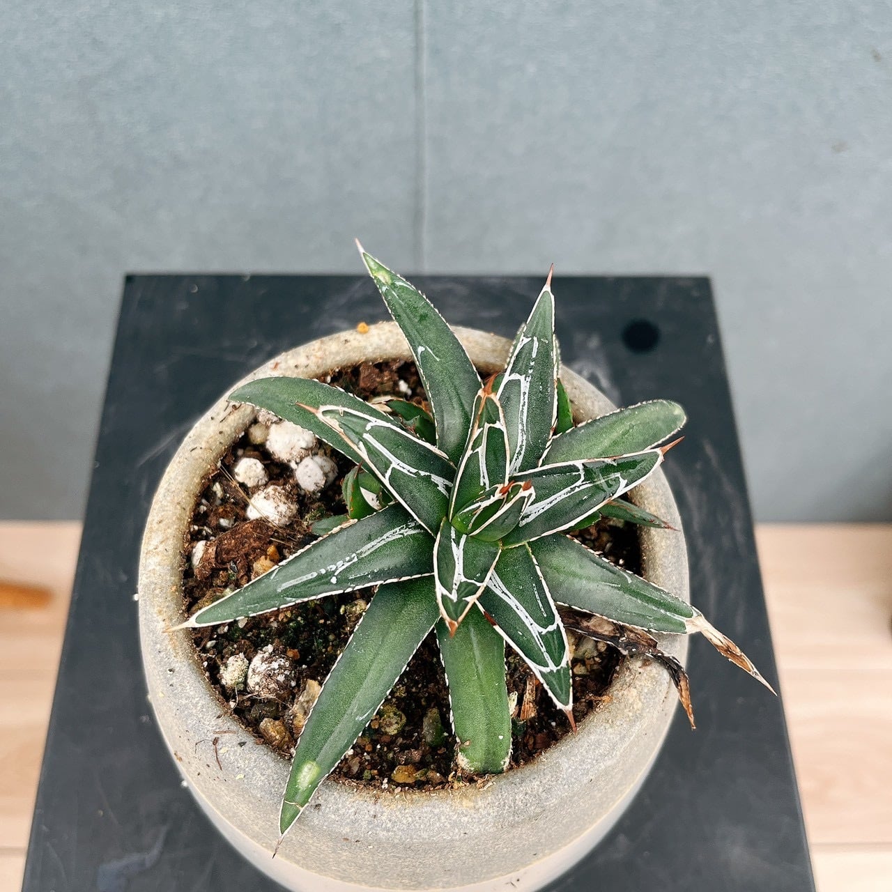 比較的育てやすく、他のアガベに比べて小さめの葉がコンパクトにロゼット状に広がる品種で、管理しやすいのもおすすめポイントです♪