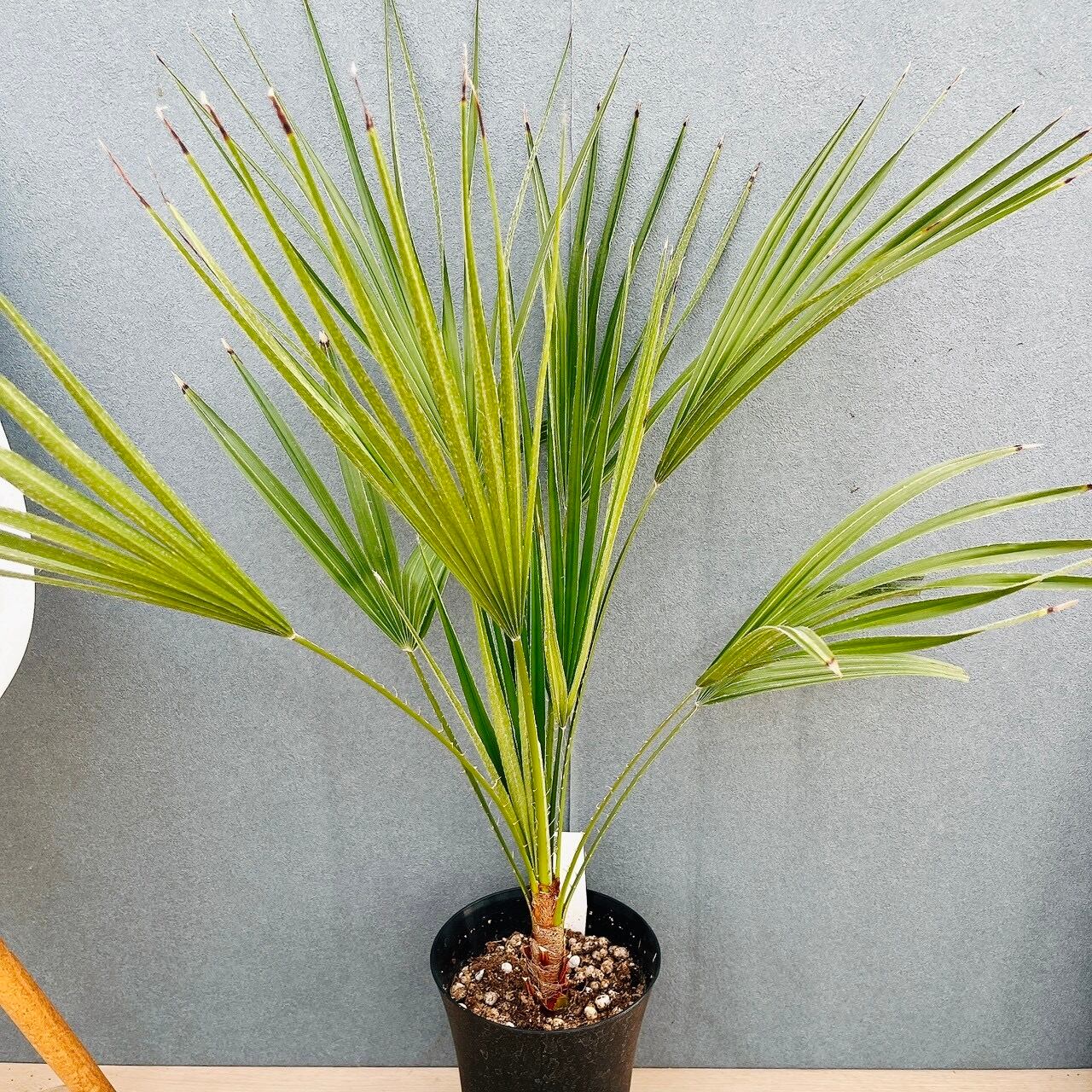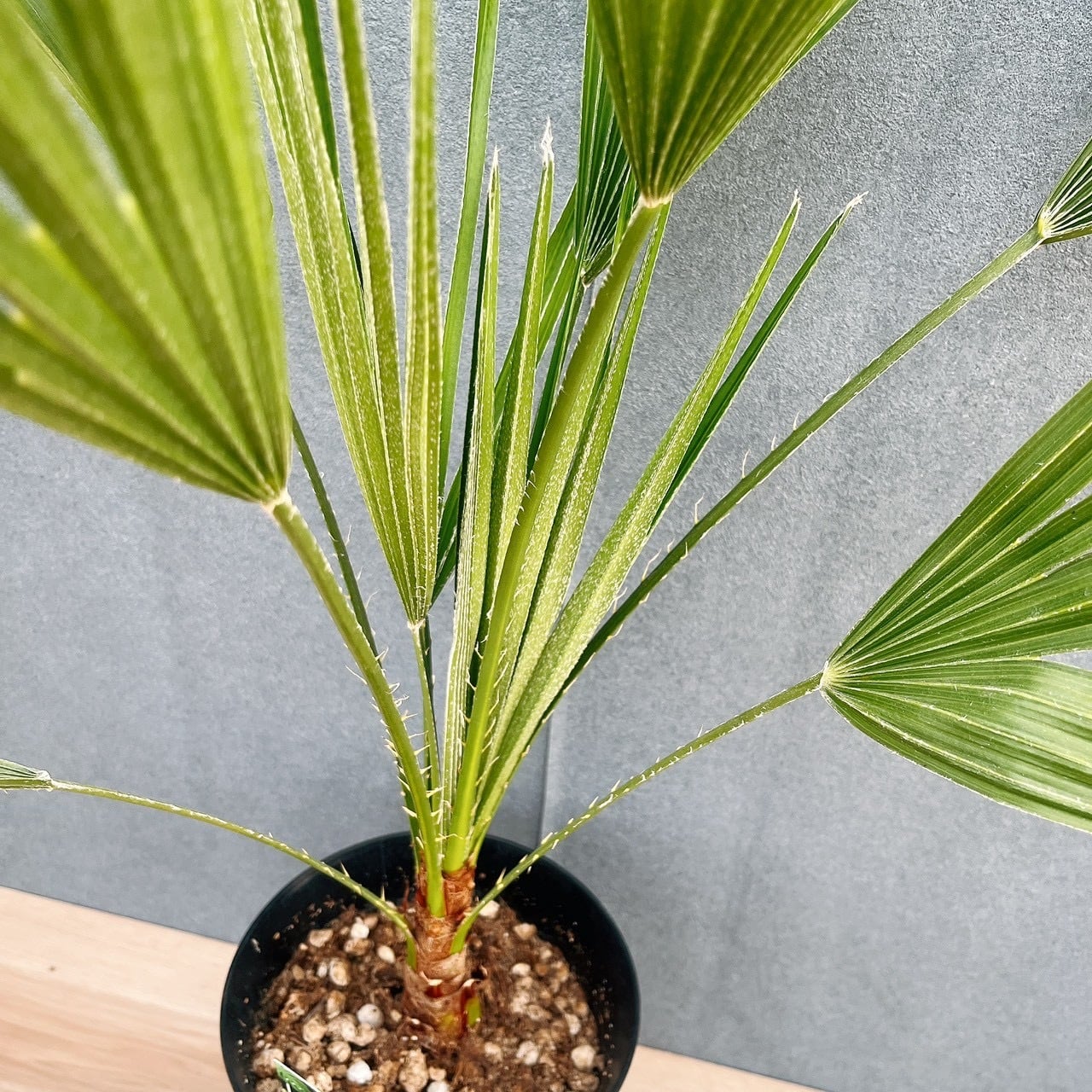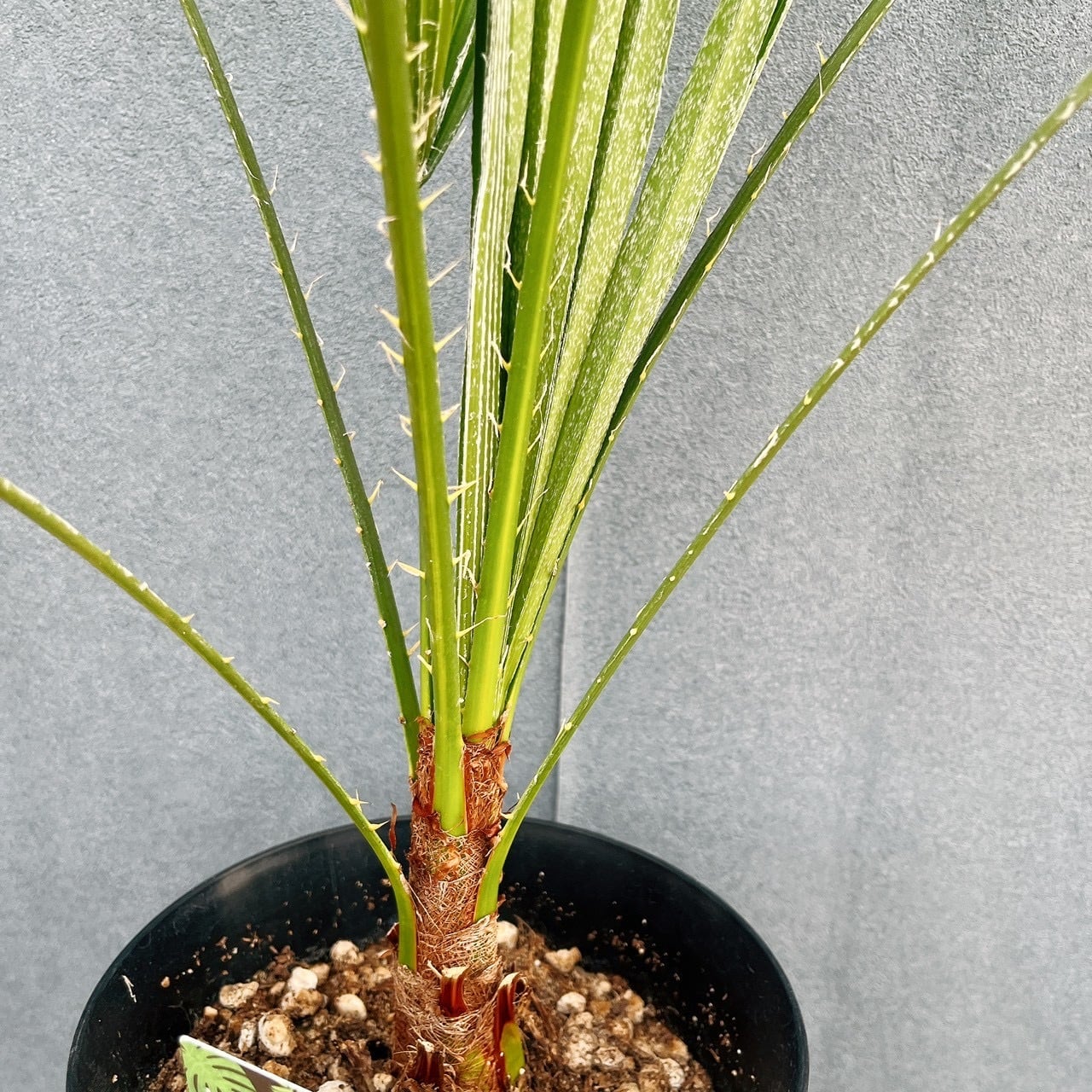 シルバーグリーンの新葉をしたヤシの仲間、チャメロプスボルケーノです☆