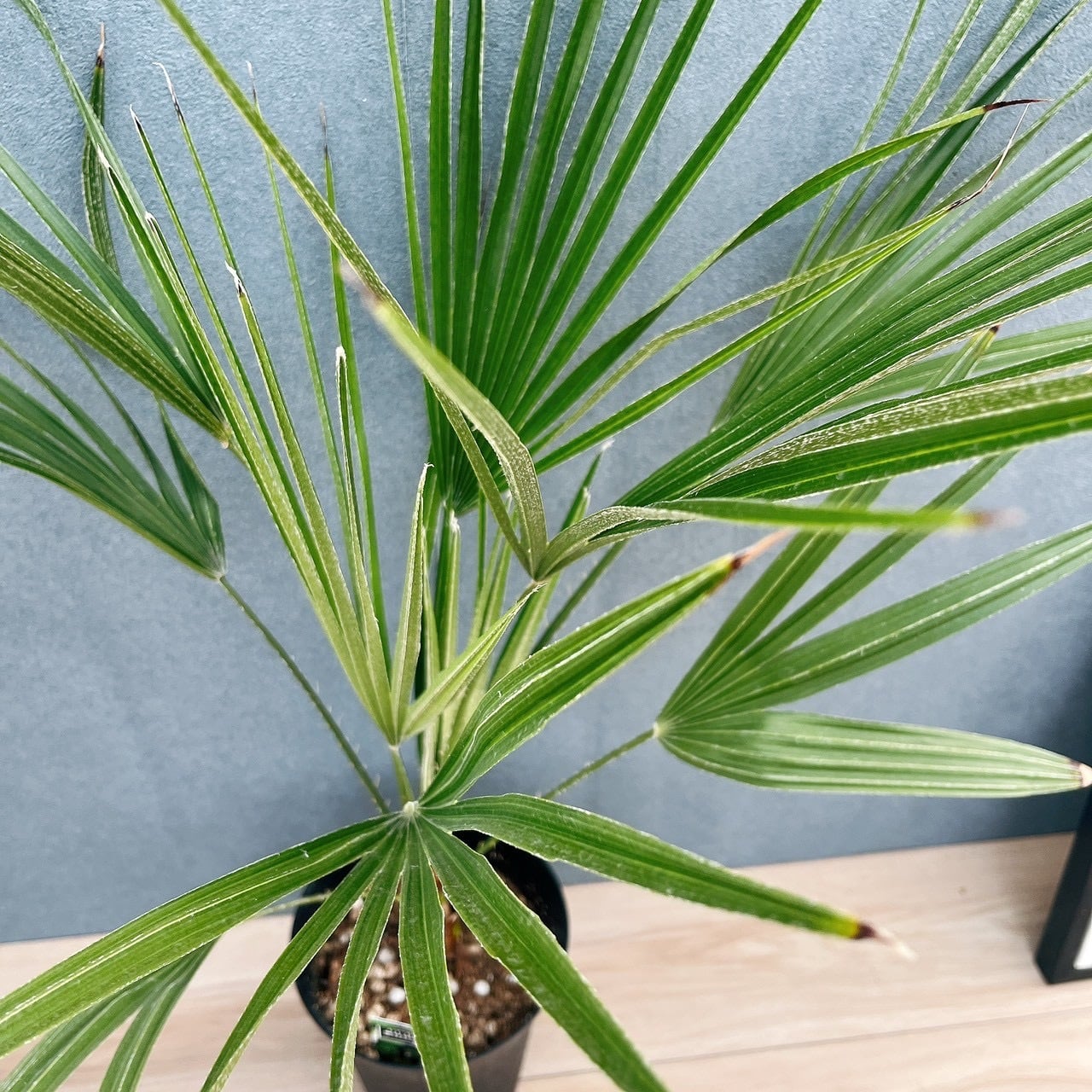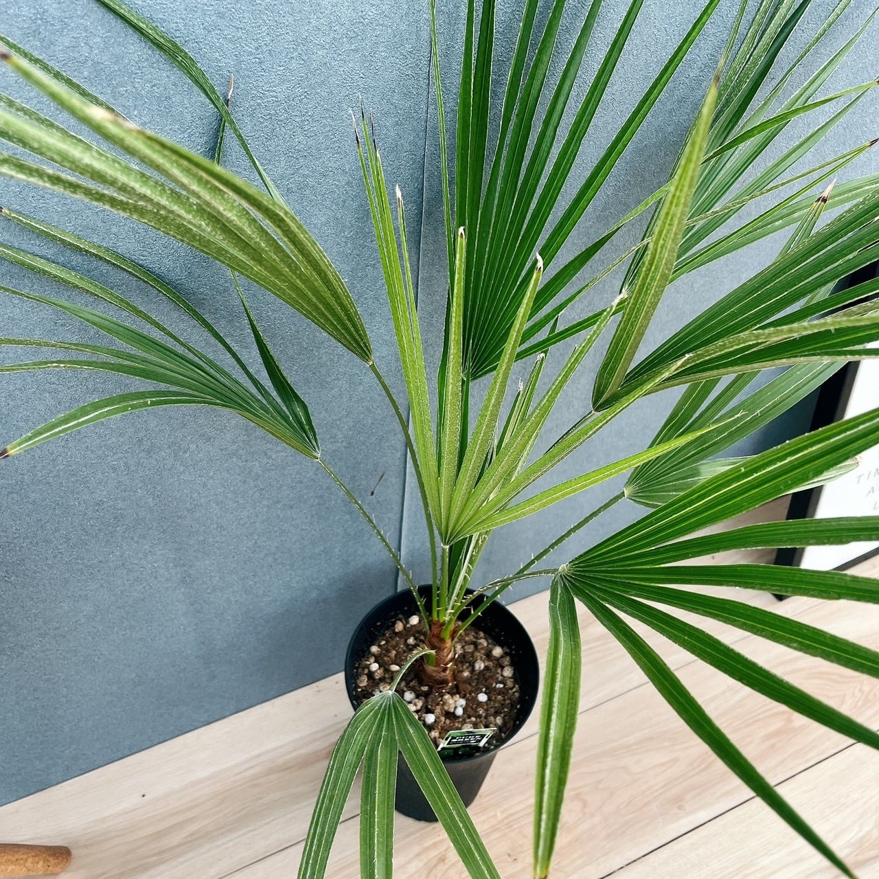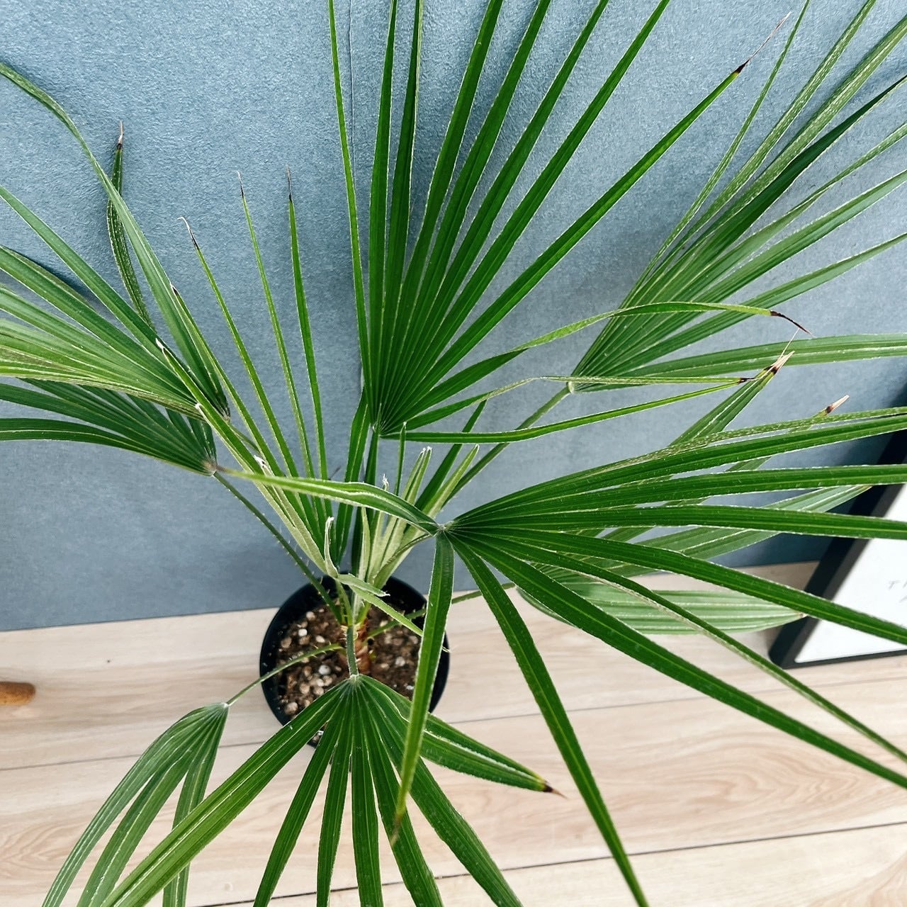 シルバーグリーンの新葉をしたヤシの仲間、チャメロプスボルケーノです☆