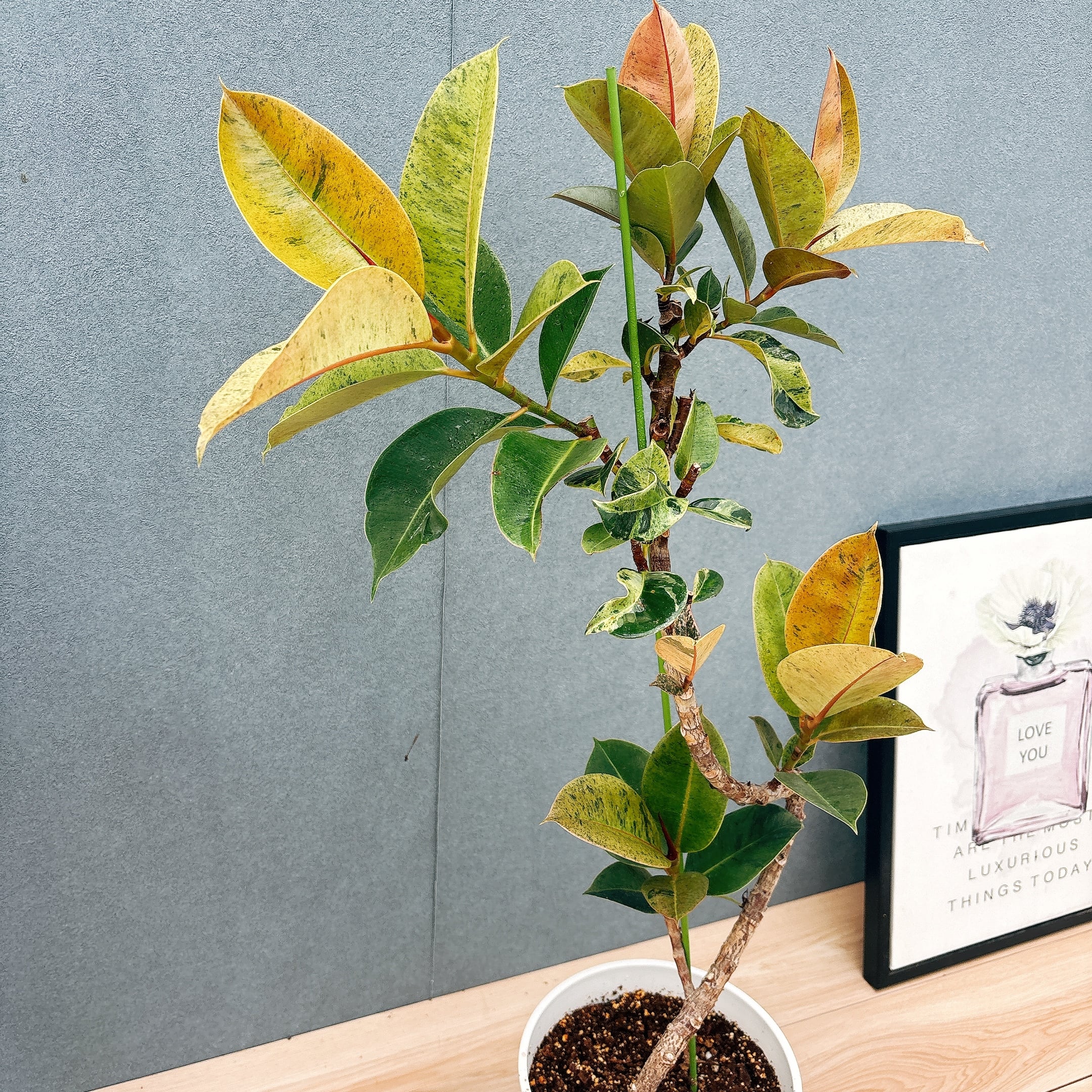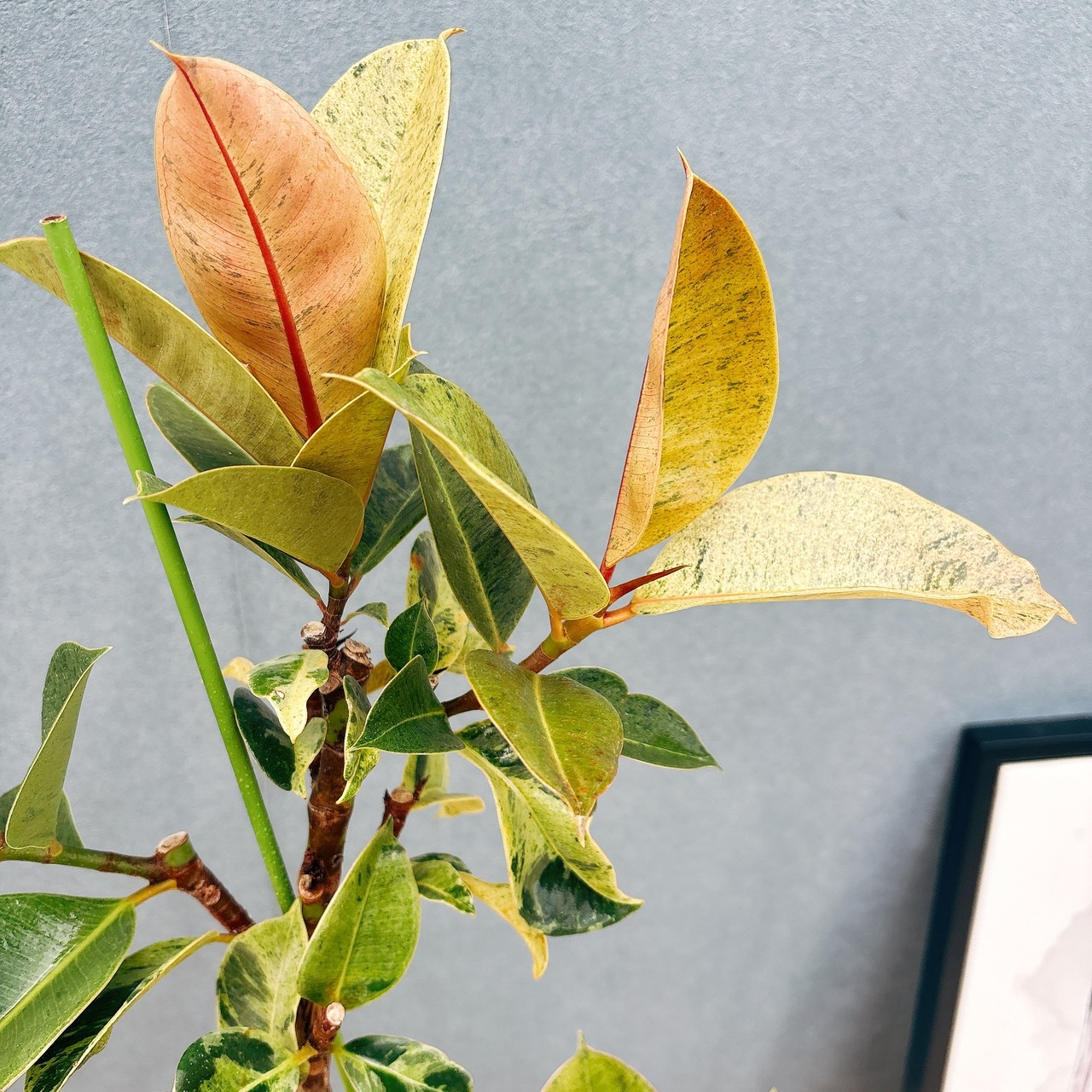 散り斑等おしゃれな斑の入った美しい品種、フィカスジンです☆ゴムの木の一種で、フィカスエラスティカの仲間になります。