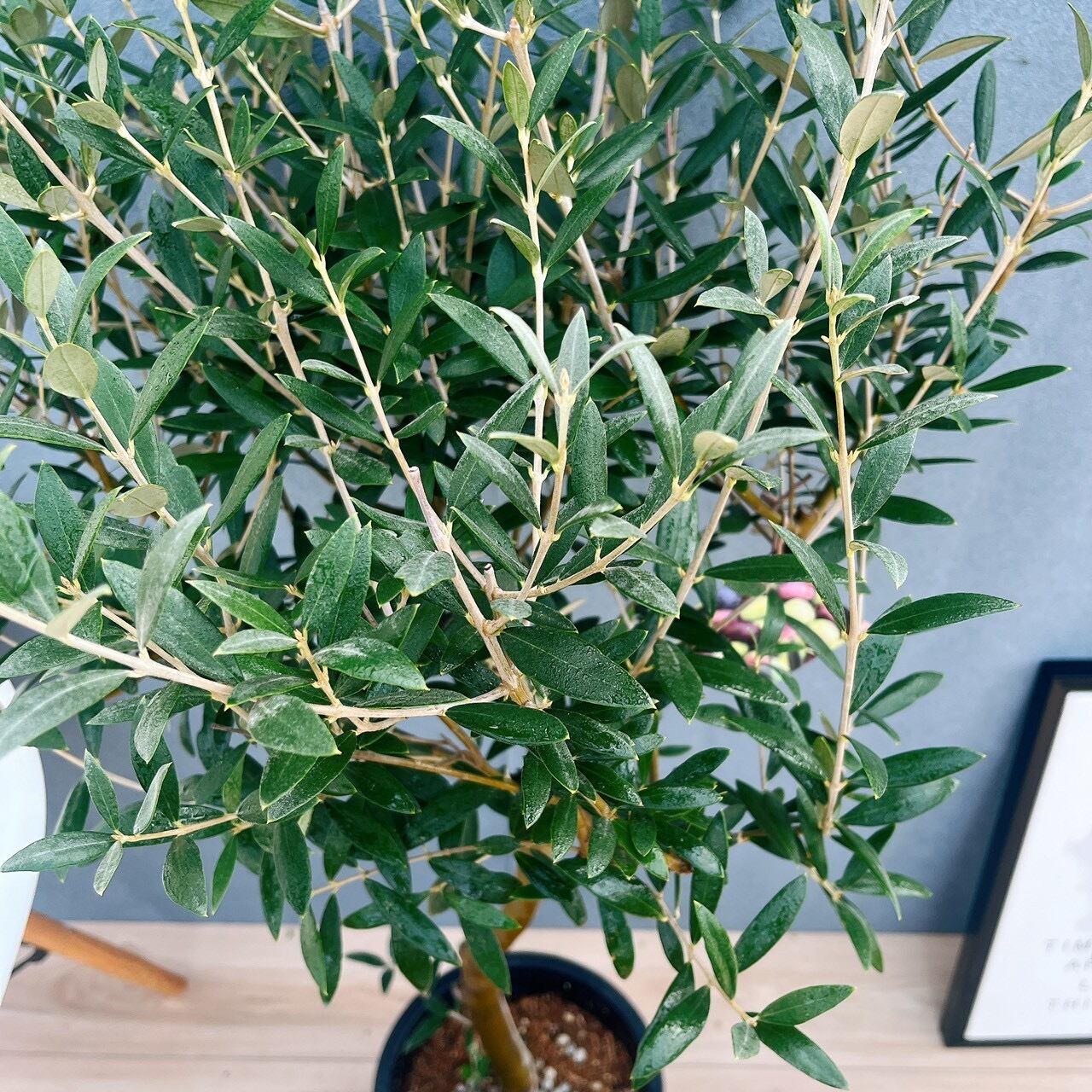 葉の裏は白く、他のオリーブと比べると銀色をしており、とても上品な印象があります。