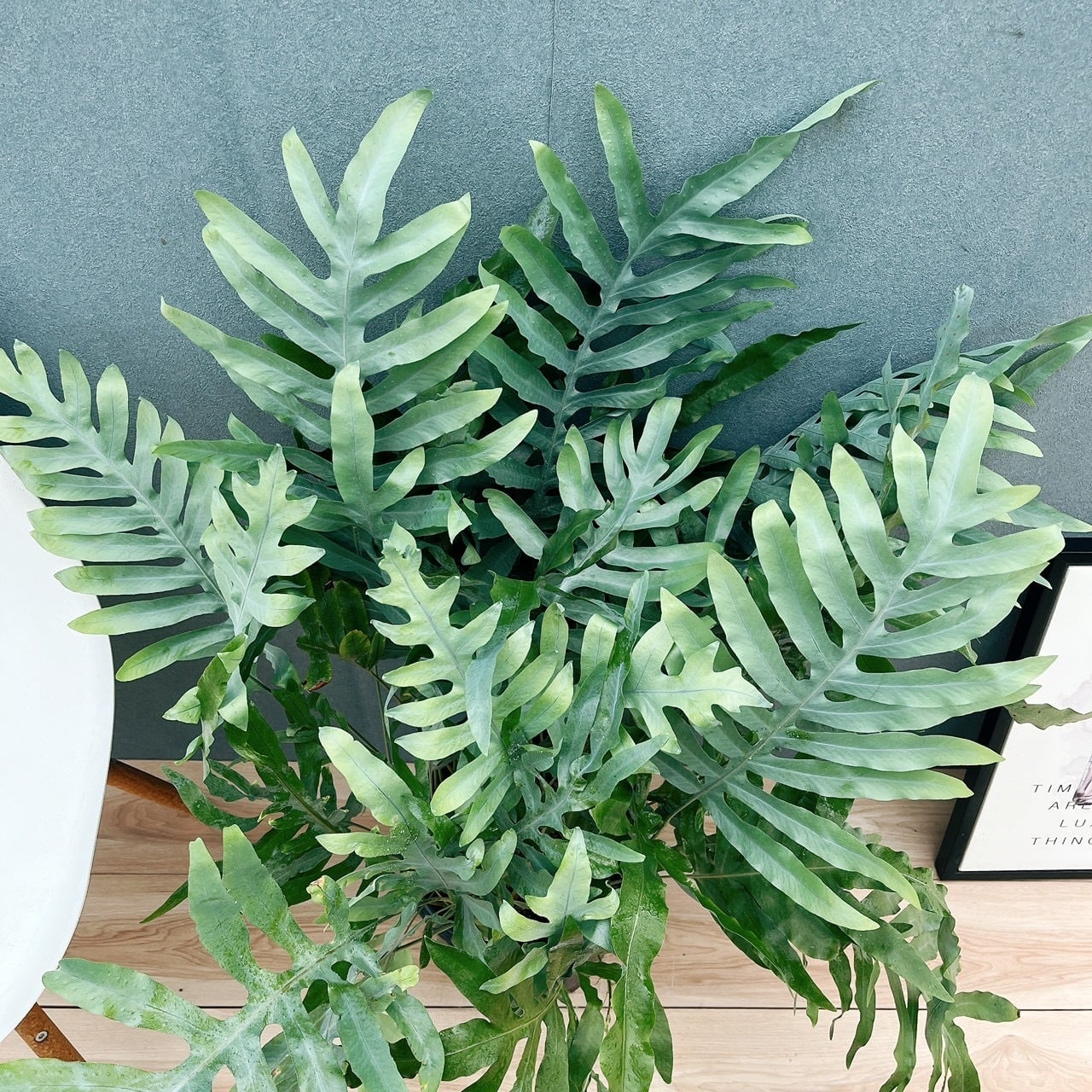シルバーブルーのヒラヒラとした海藻のようなユニークな葉を持つシダ植物、フレボディウムオーレムブルースターです☆