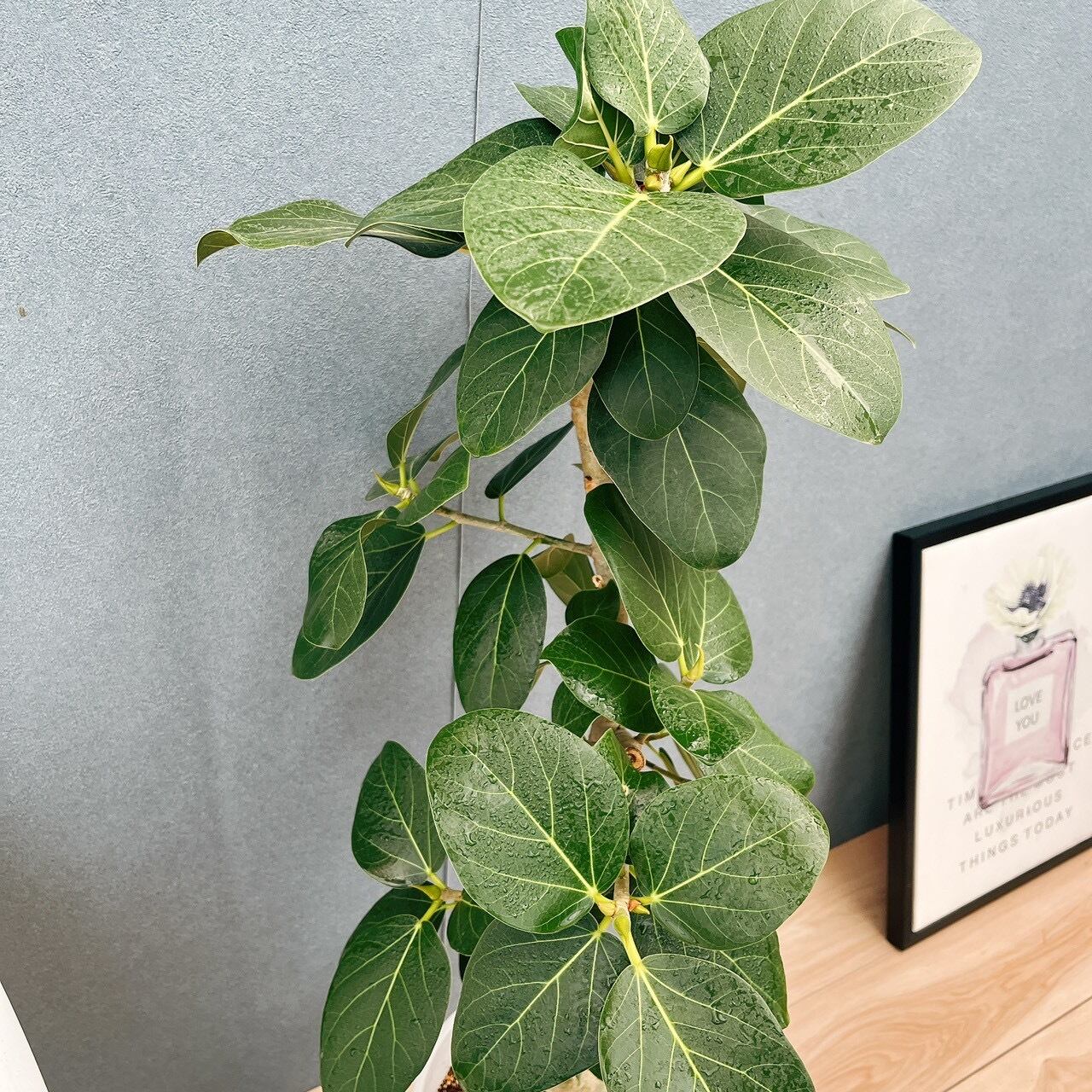 ゴムの木の仲間で、丈夫で育てやすいことから、初心者の方にもおすすめの品種で、『永遠の幸せ』という素敵な花言葉を持ちますので、新築祝いや開店祝い等、お祝い事にもおすすめですよ。
